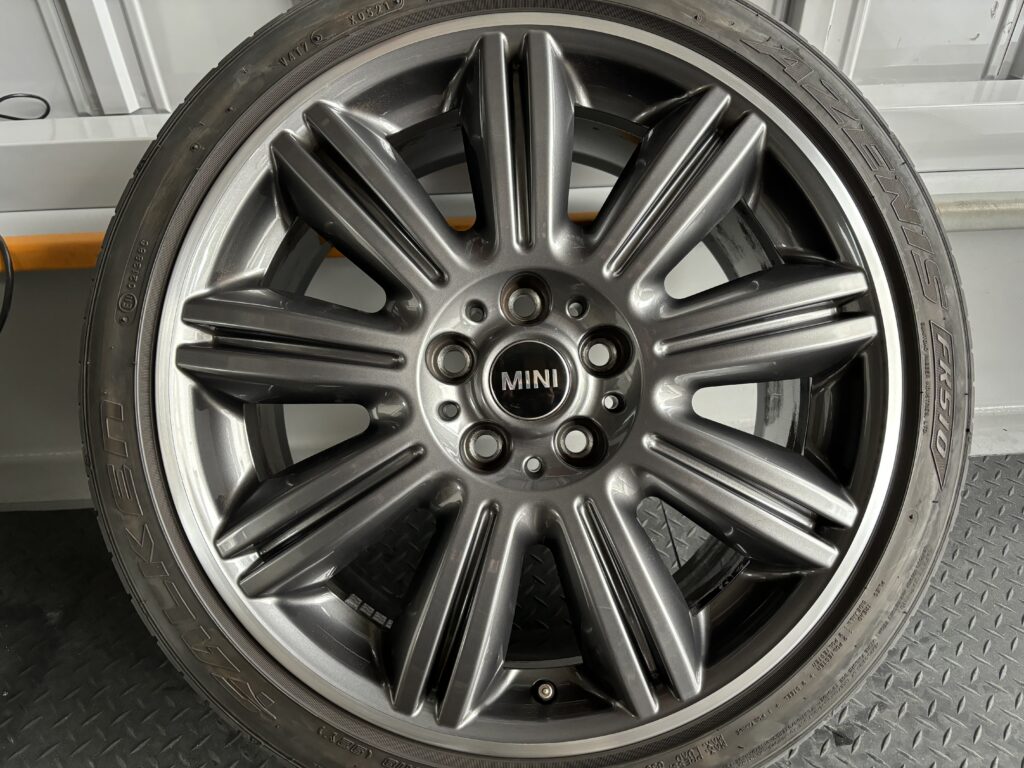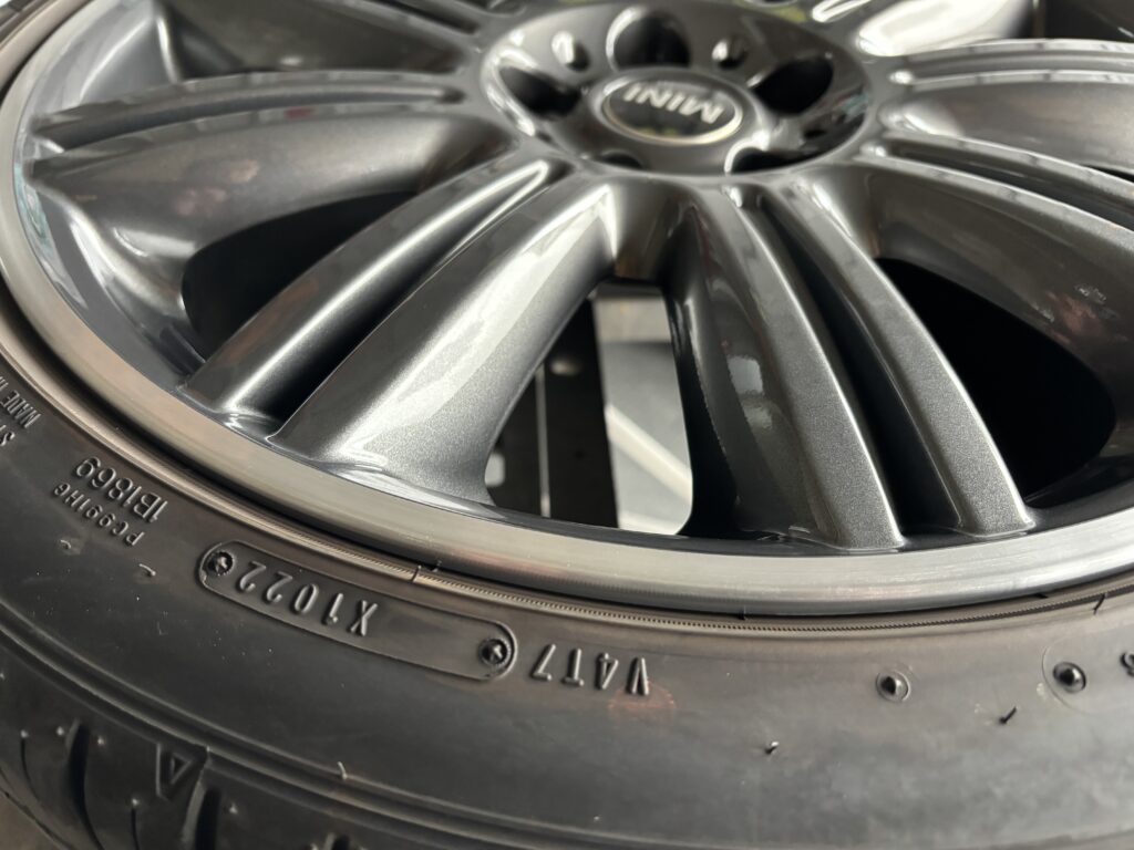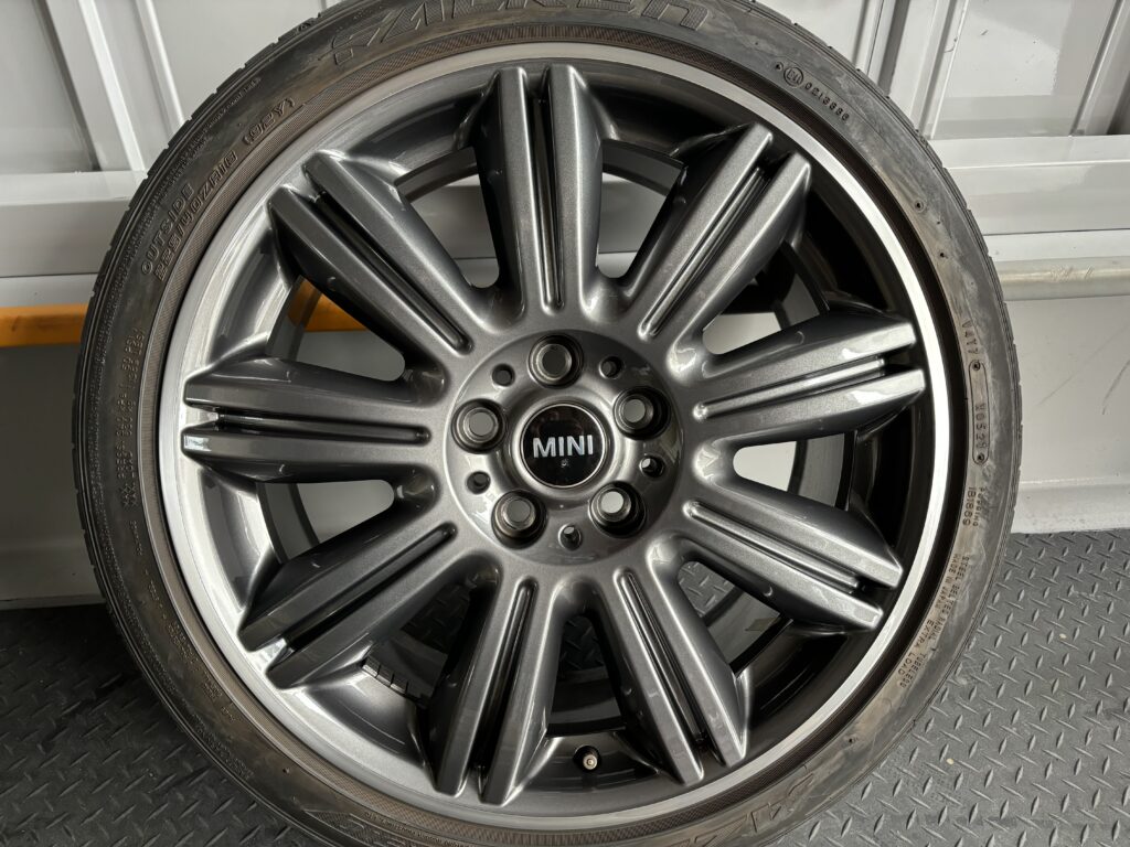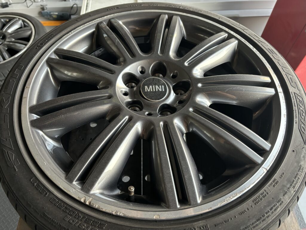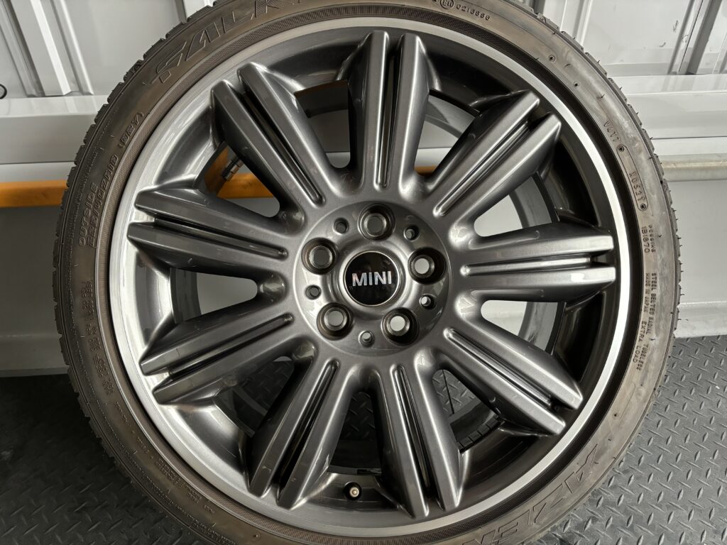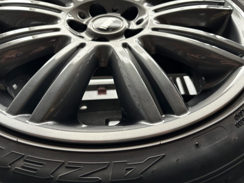 本日はミニ専門店からの依頼で、クラブマン クーパーSDの純正ガンメタ/ダイヤカットポリッシュホイールガリキズ 4本をガンメタ塗装とポリッシュ切削研磨でリペアさせていただきました。