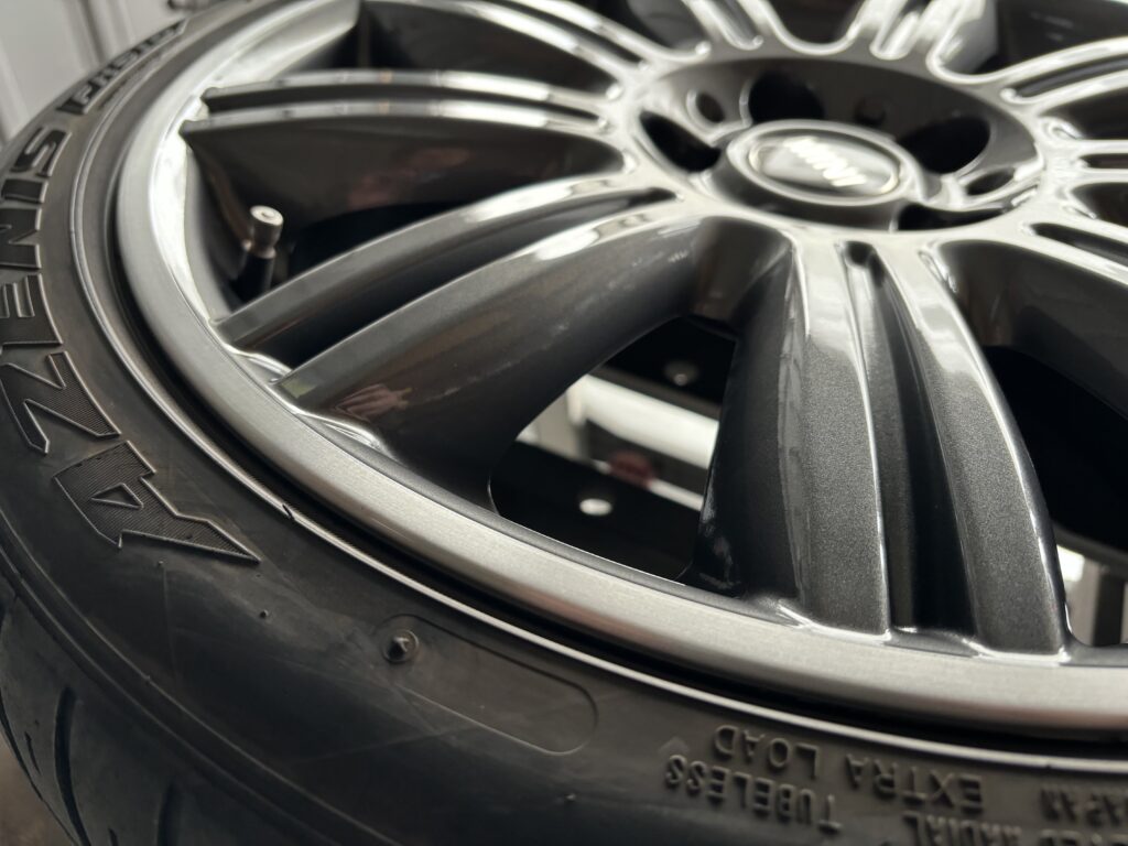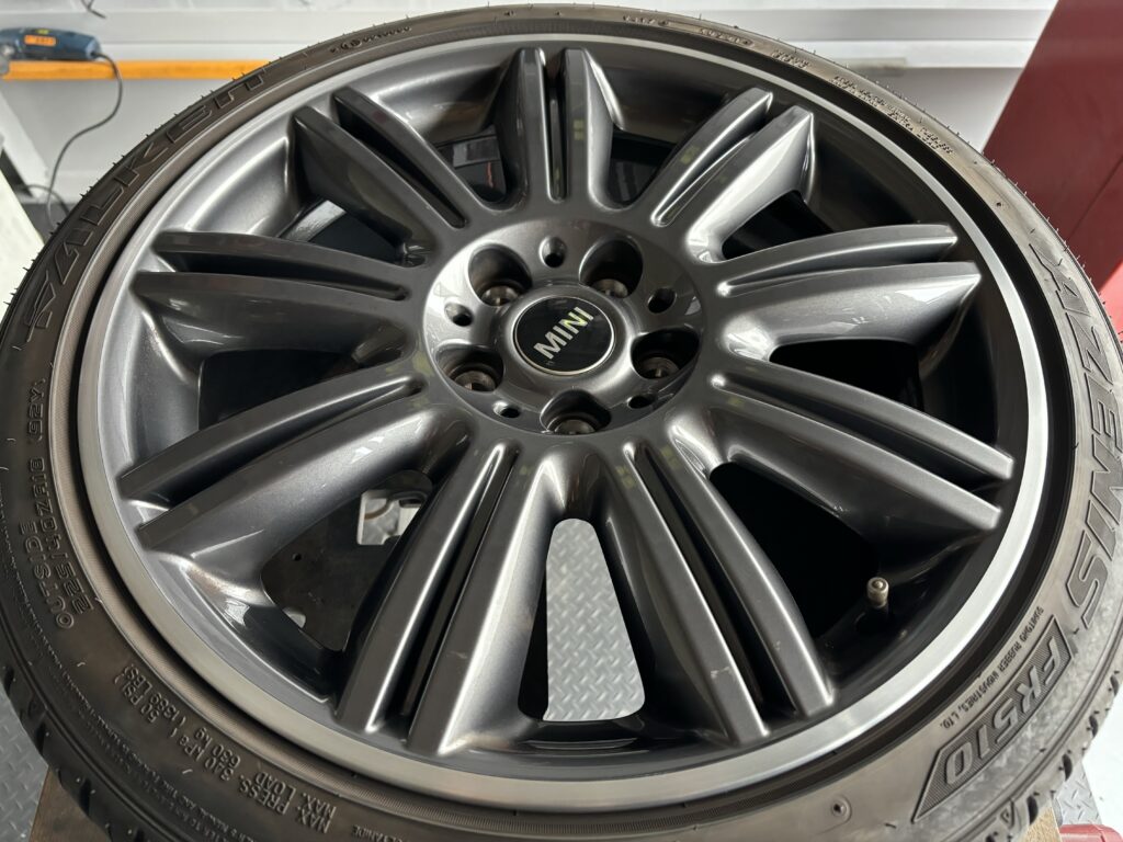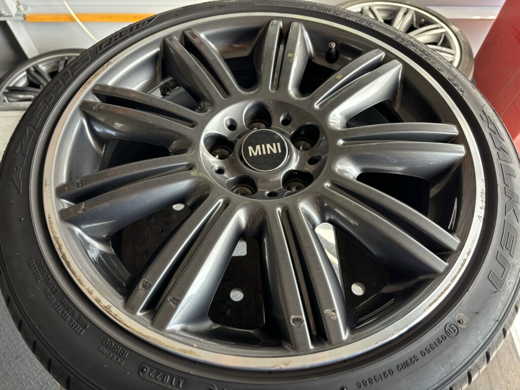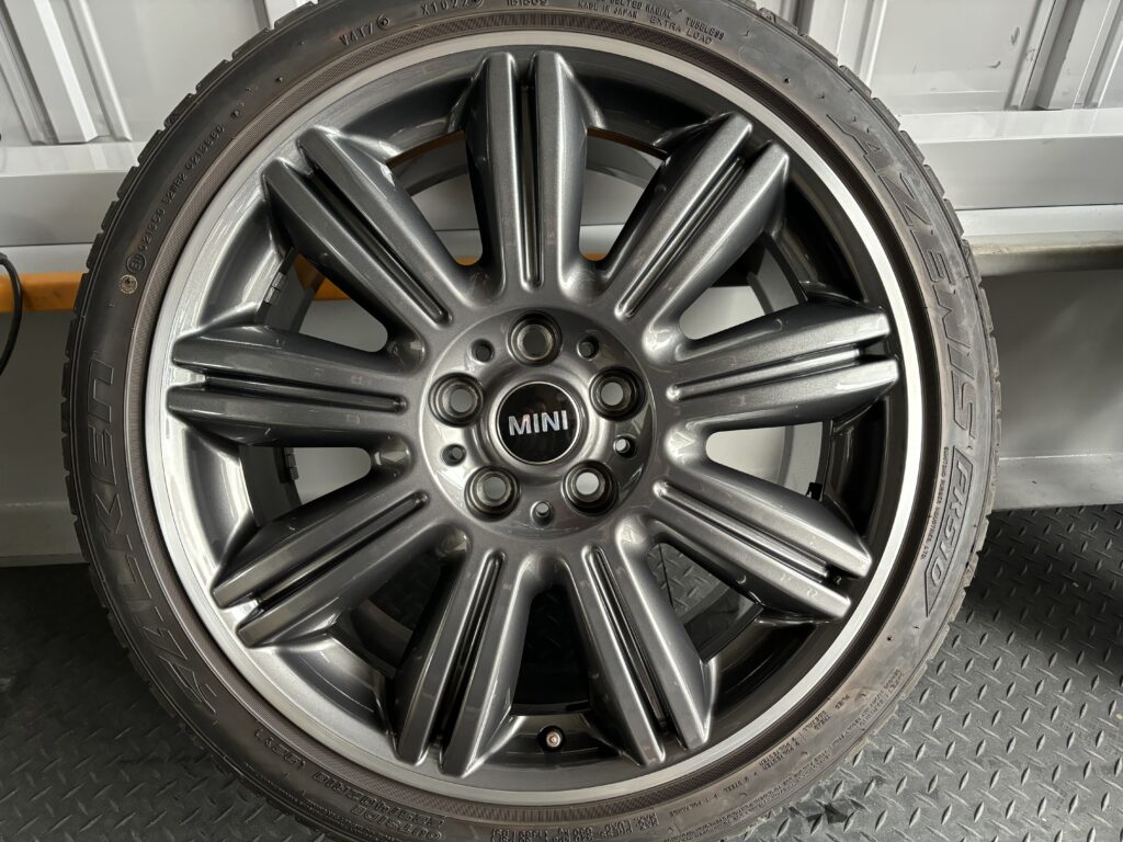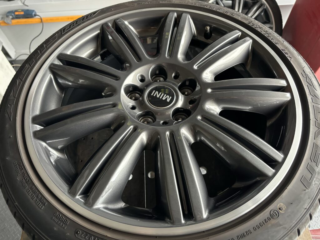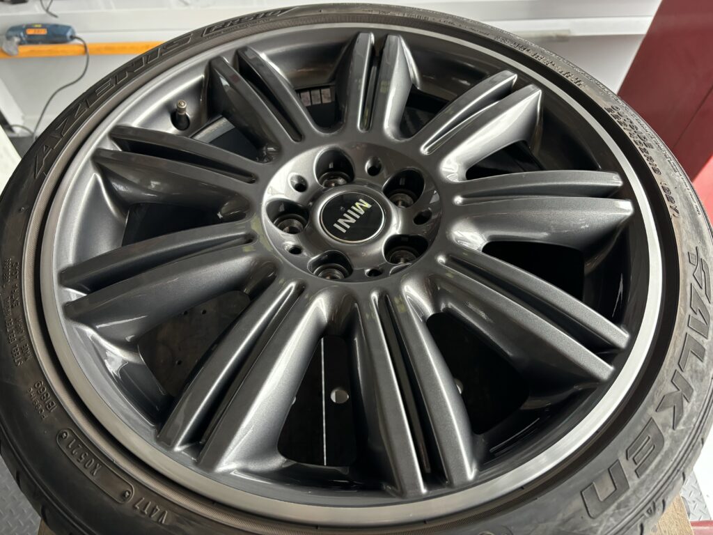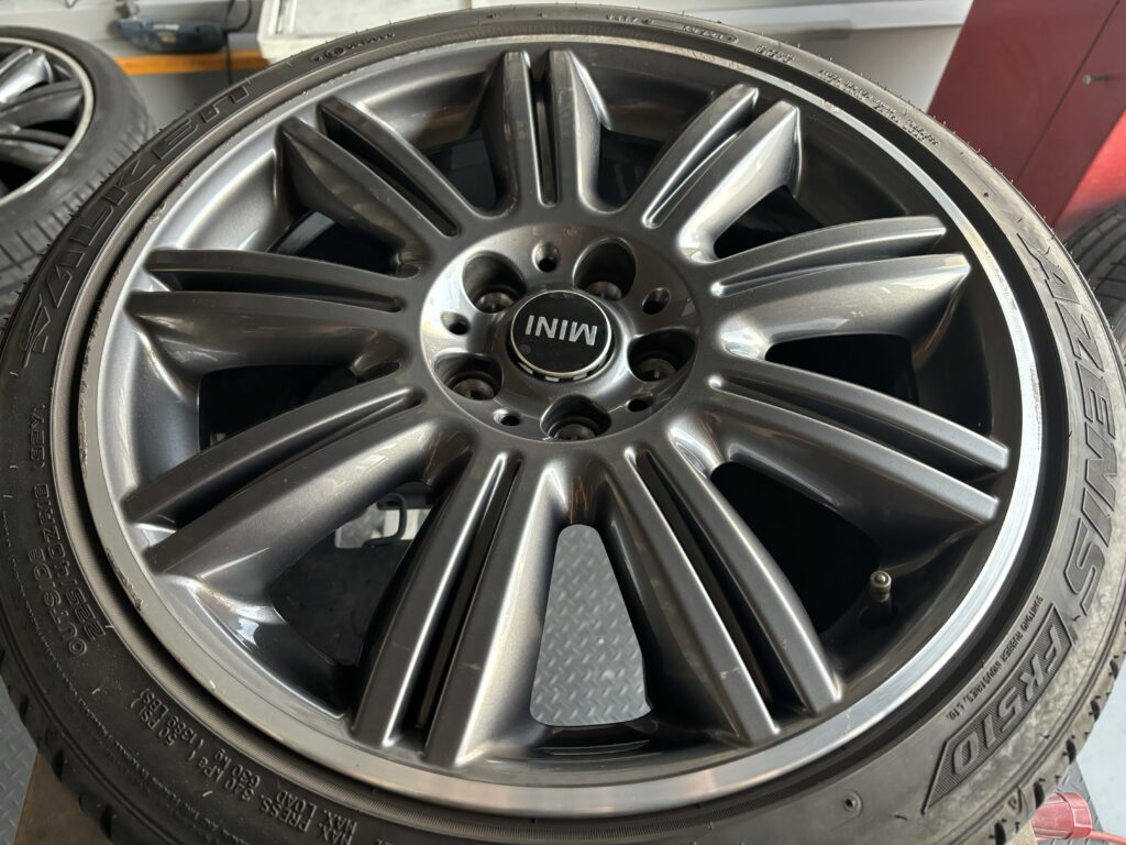 本日はミニ専門店からの依頼で、クラブマン クーパーSDの純正ガンメタ/ダイヤカットポリッシュホイールガリキズ 4本をガンメタ塗装とポリッシュ切削研磨でリペアさせていただきました。