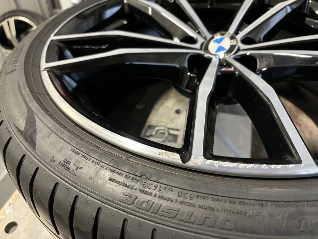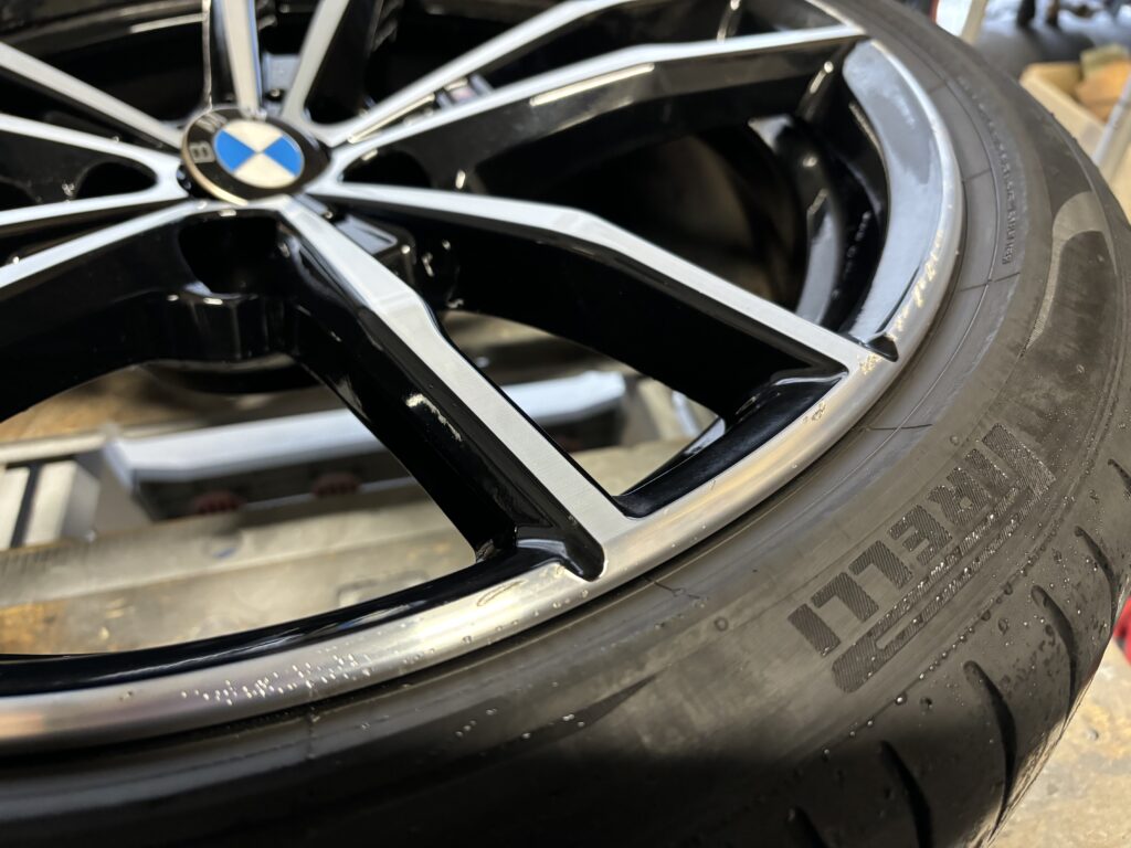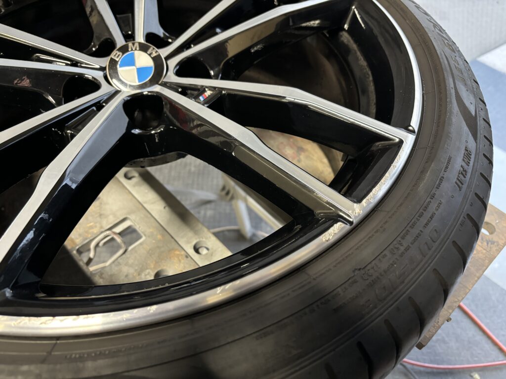 本日はBMW販売ディーラーからの依頼で320i Mスポーツ純正ブラック/ダイヤカットホイールガリキズをポリッシュ塗装とポリッシュ切削研磨でリペアさせていただきました。