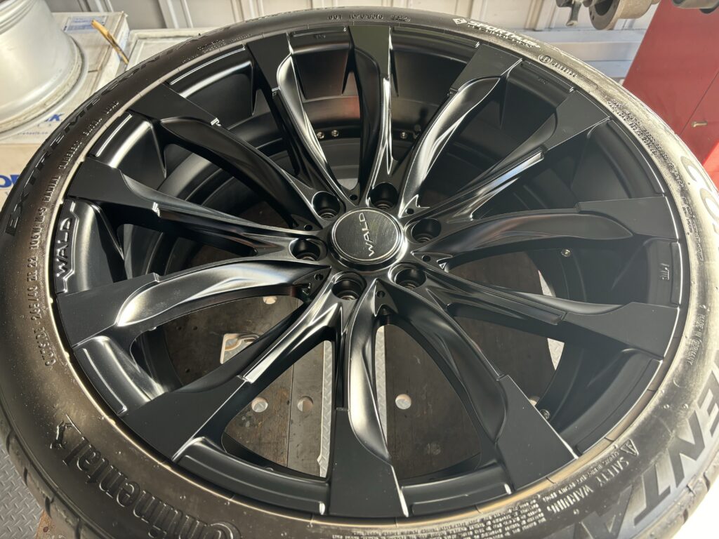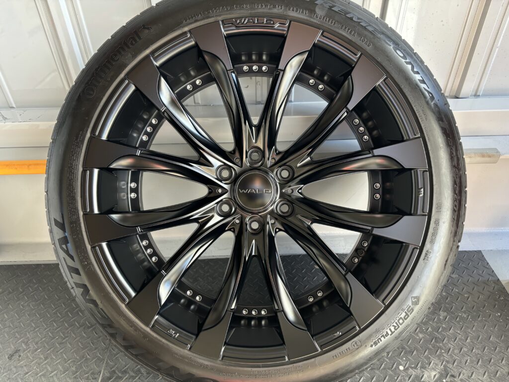 本日はトヨタ・プラドに装着のWDLD(ヴァルド)ジャレット22inchマットブラックアルミホイールガリキズをマットブラック塗装でリペアさせていただきました。