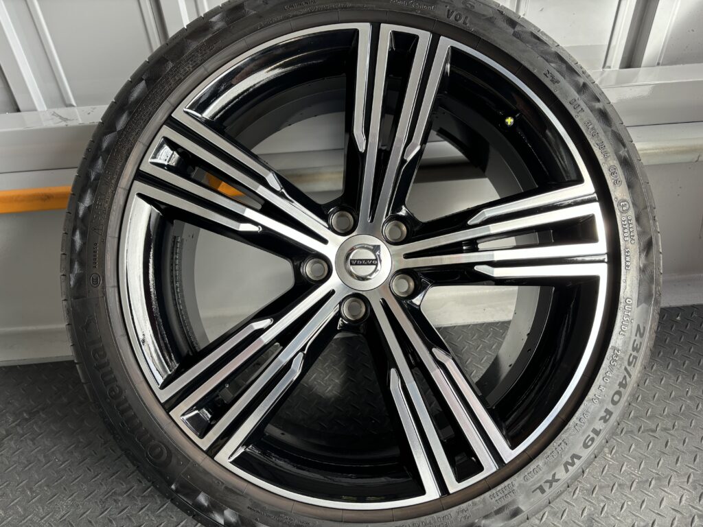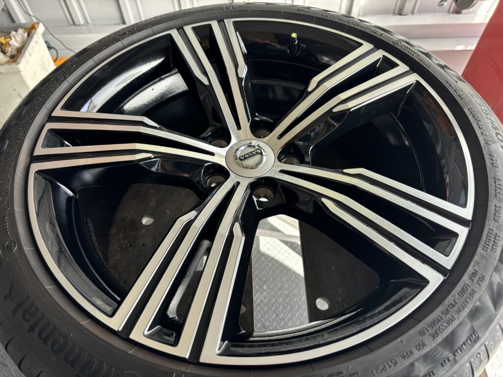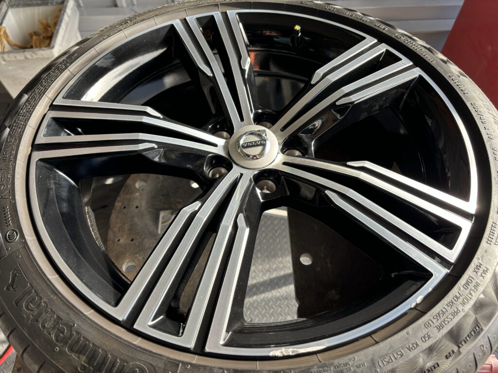 本日はボルボV60の純正ブラック/ダイヤモンドカットアルミホイールガリキズをアルミ硬化パテを充填してブラック塗装・ポリッシュ塗装でリペアさせていただきました。