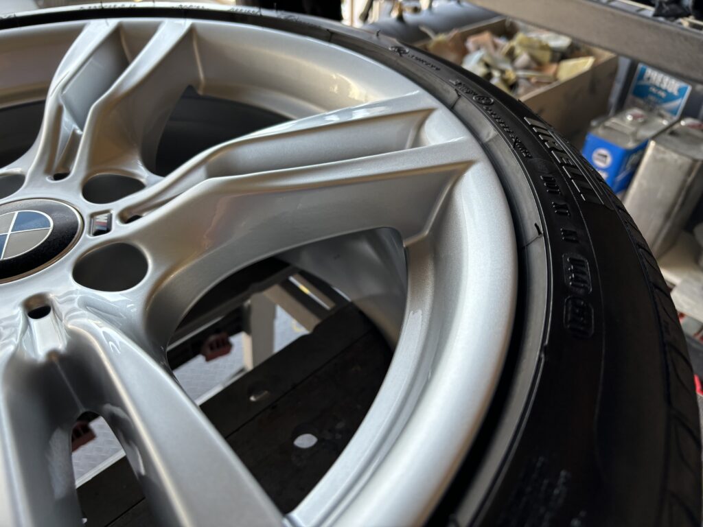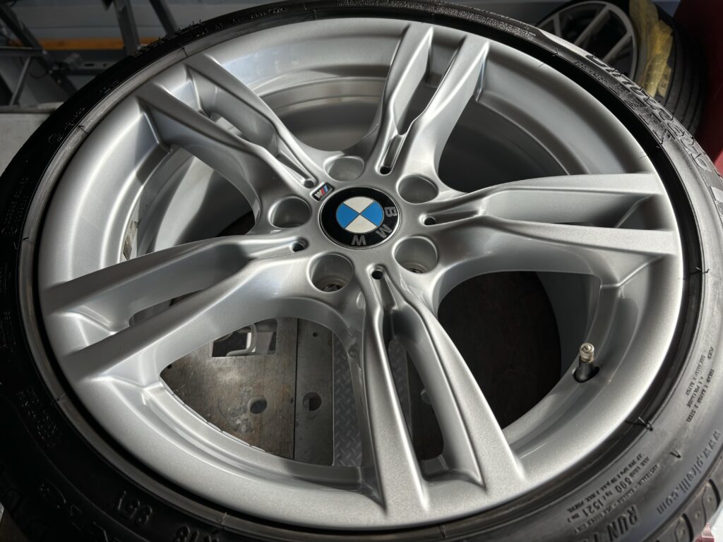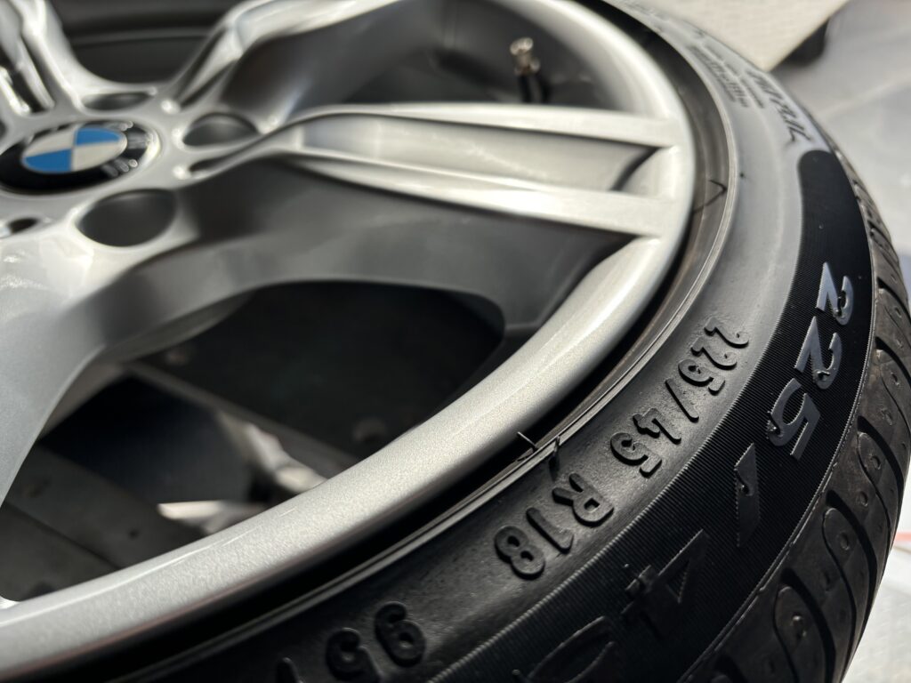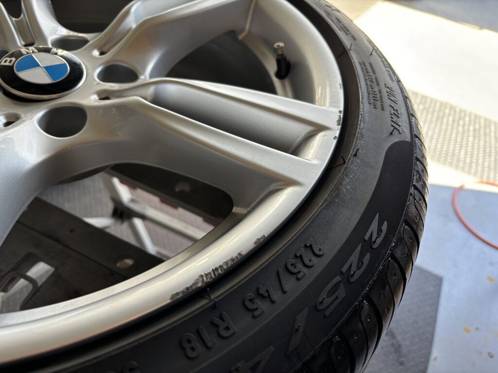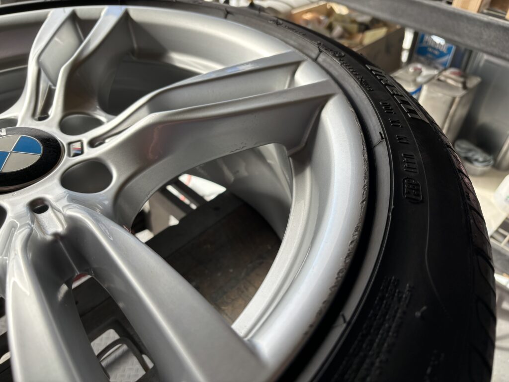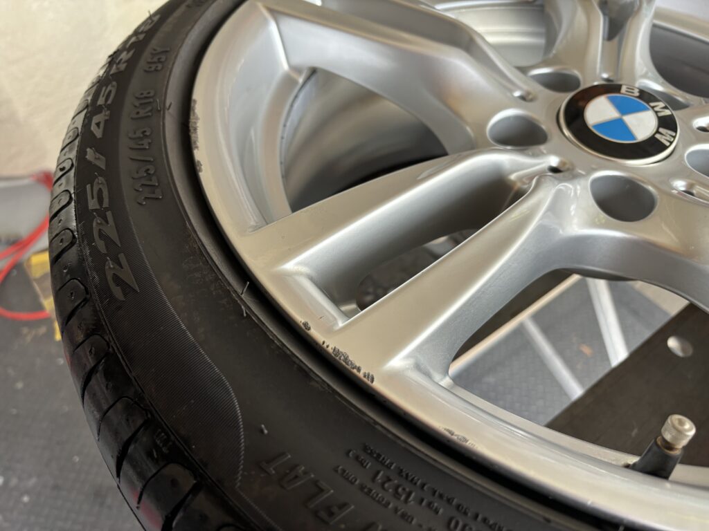 本日はBMW320d Mスポーツの純正アルミホイールガリキズ 2本をシルバー塗装でリペアさせていただきました。