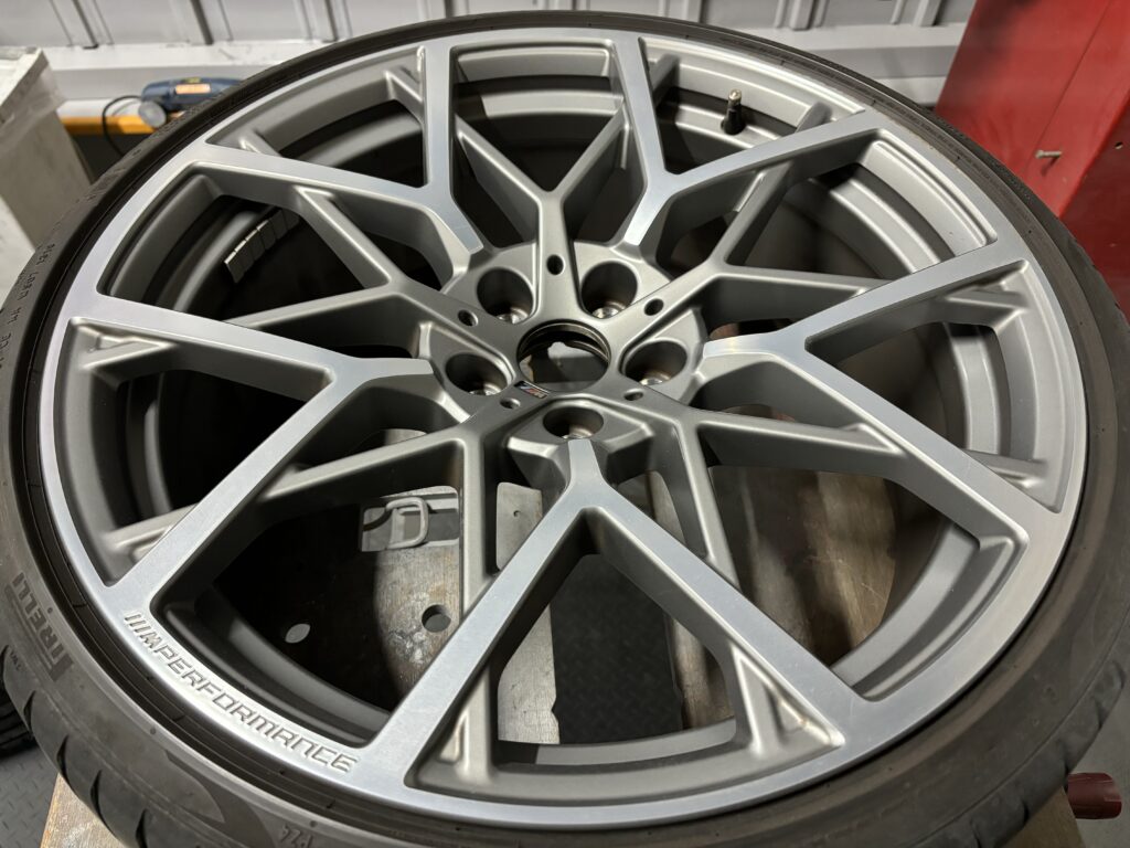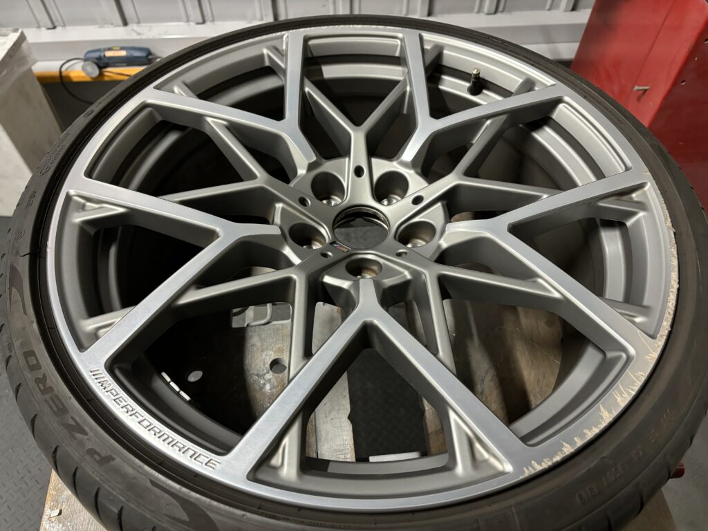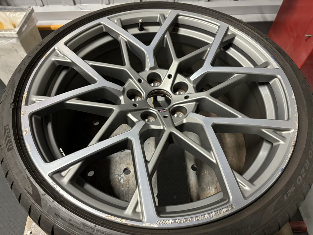 本日はBMW販売ディーラーからの依頼でM440i Mパフォーマンスアルミホイールガリキズ 4本をアルミ硬化パテを充填してマットガンメタ塗装&マットポリッシュ塗装でリペアさせていただきました。
