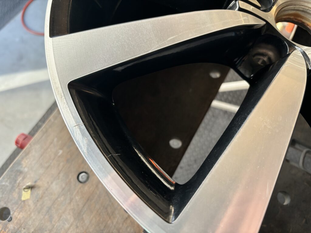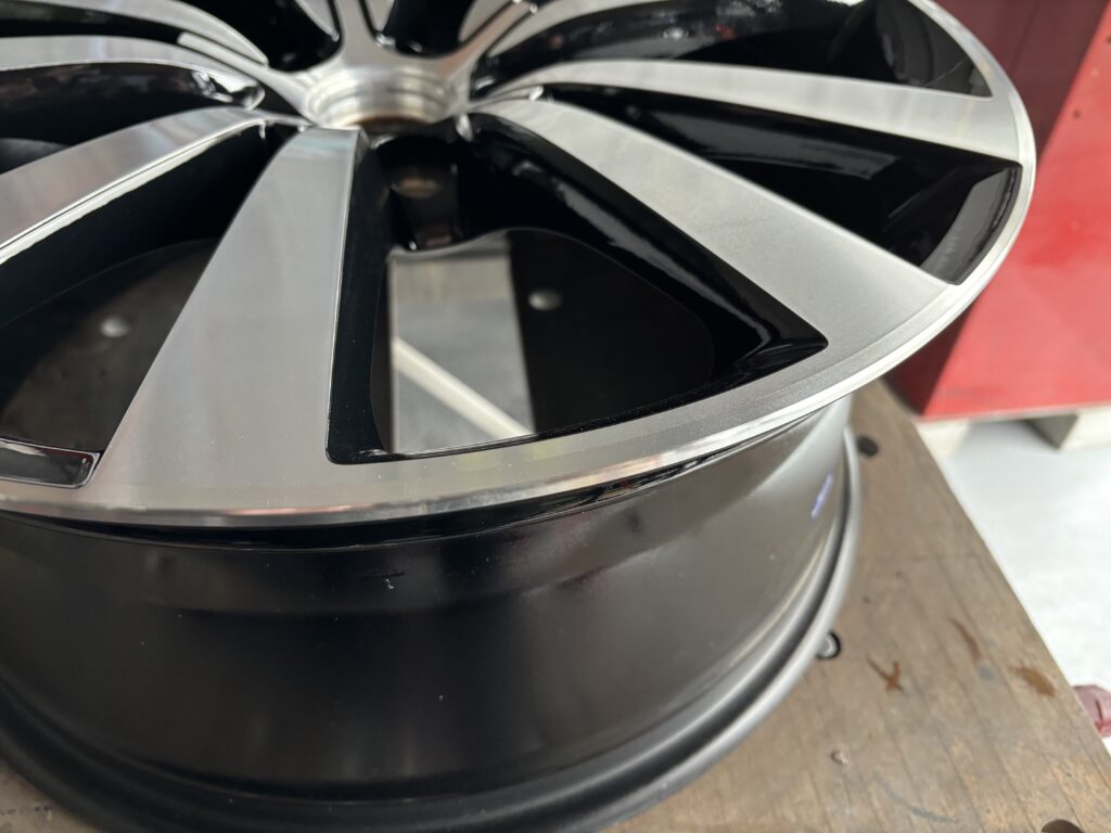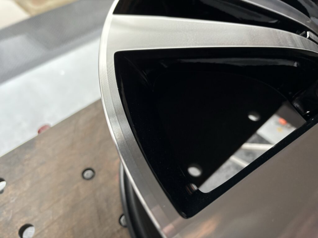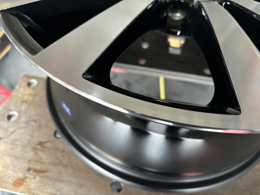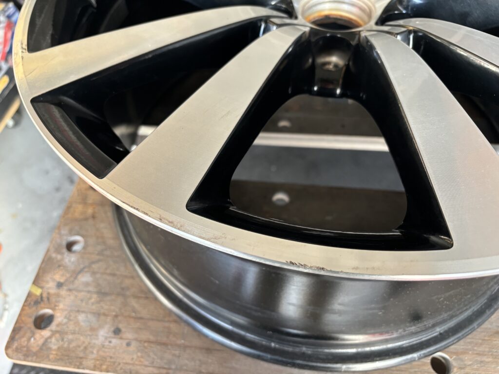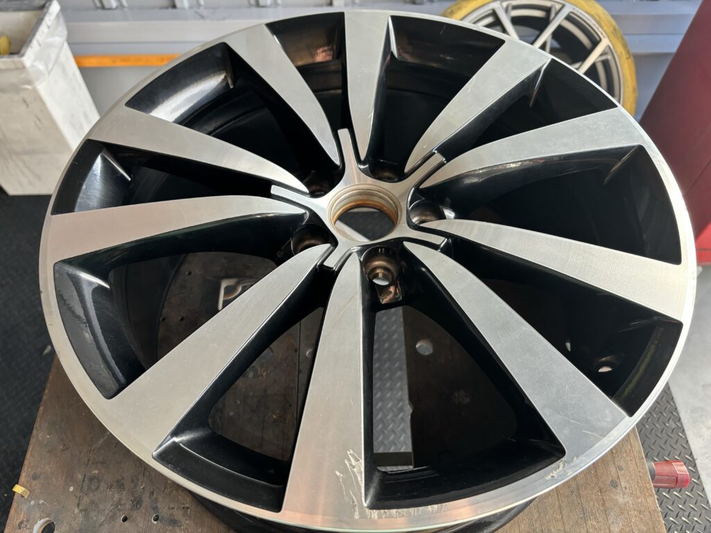 本日はフォルクスワーゲン販売ディーラーの依頼でビートル純正ブラック/ダイヤモンドカットホイールガリキズを切削旋盤を使い新品同様に仕上げるダイヤモンドカット再生リペアで施工させていただきました。