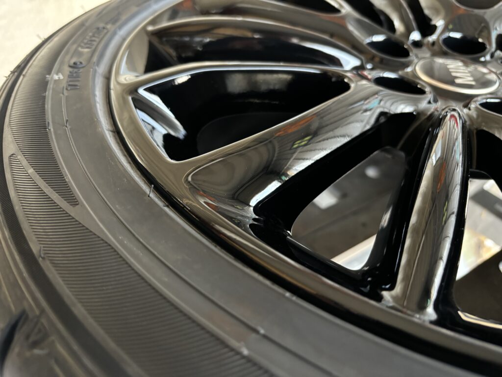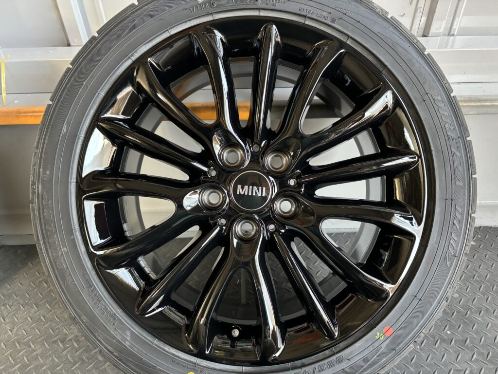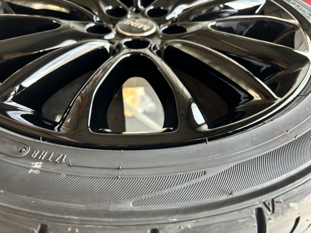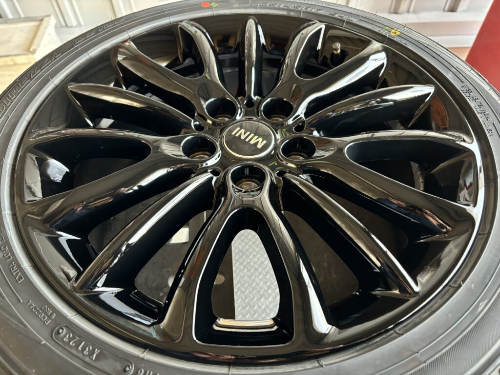 本日はミニ クラブマンの純正アルミホイールガリキズをブラック塗装でリペアさせていただきました。