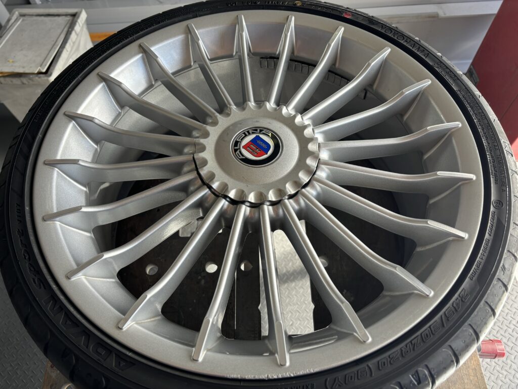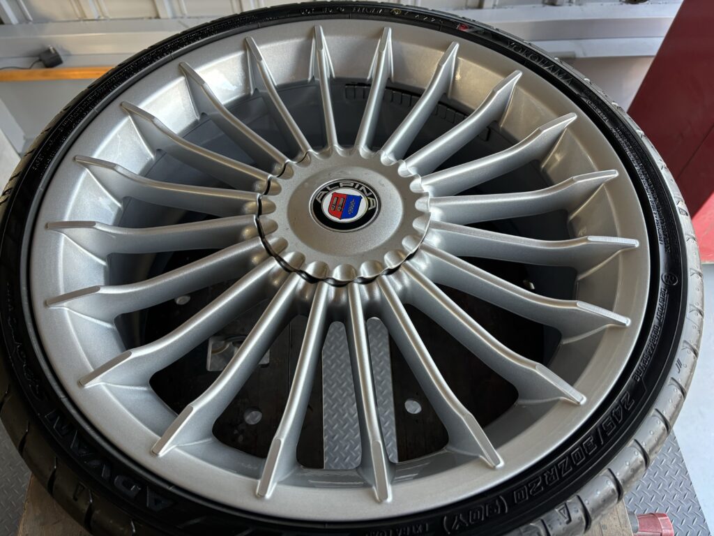 本日はBMWアルピナB3の純正アルミホイールガリキズをアルピナシルバー塗装でリペアさせていただきました。