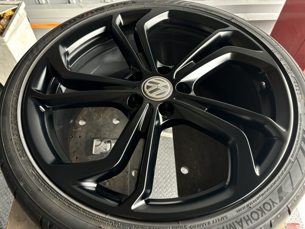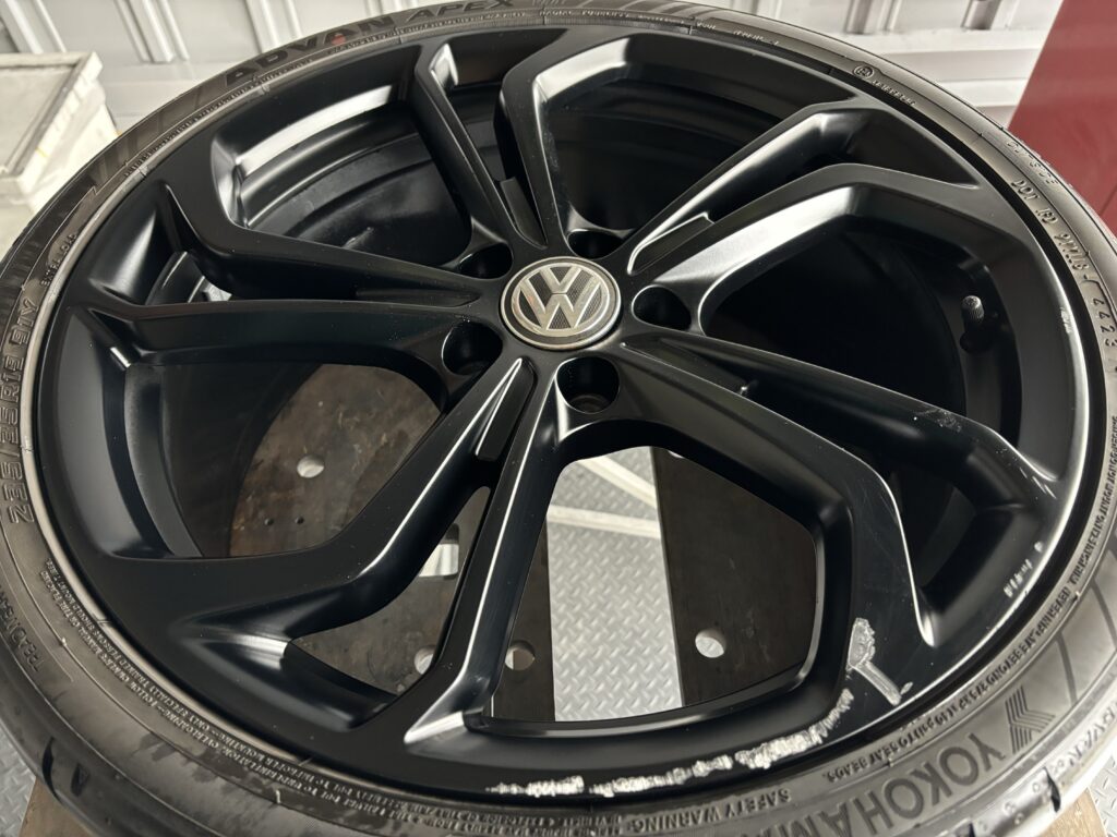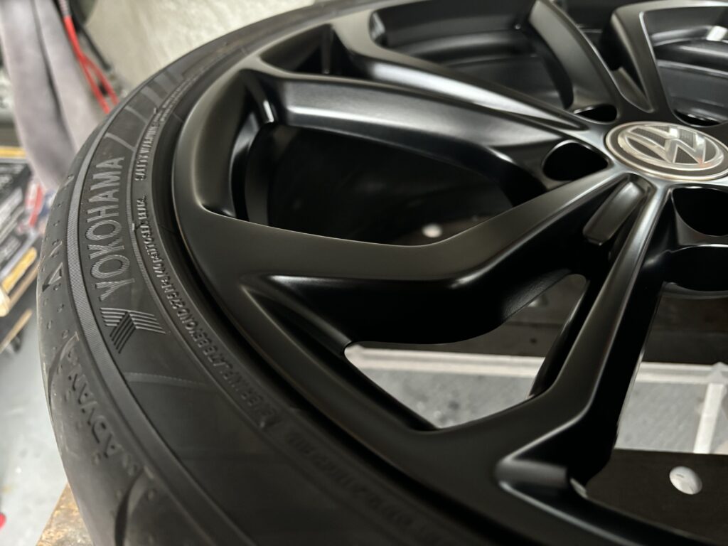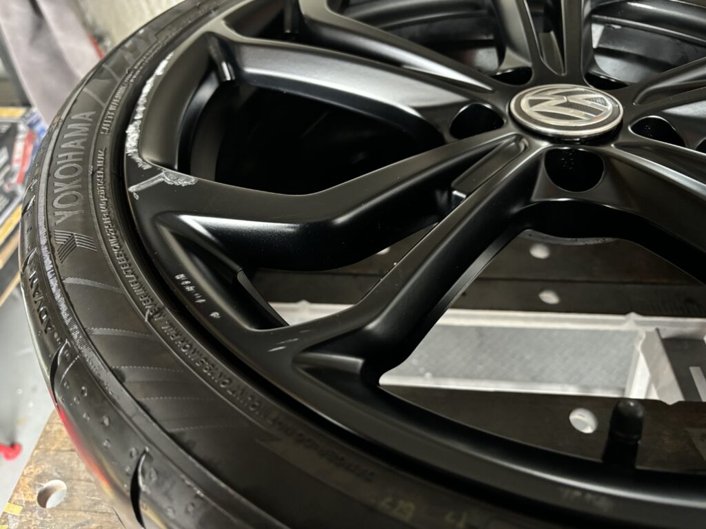 本日はゴルフ7GTI TCRの純正アルミホイールガリキズをマットブラック塗装でリペアさせていただきました。