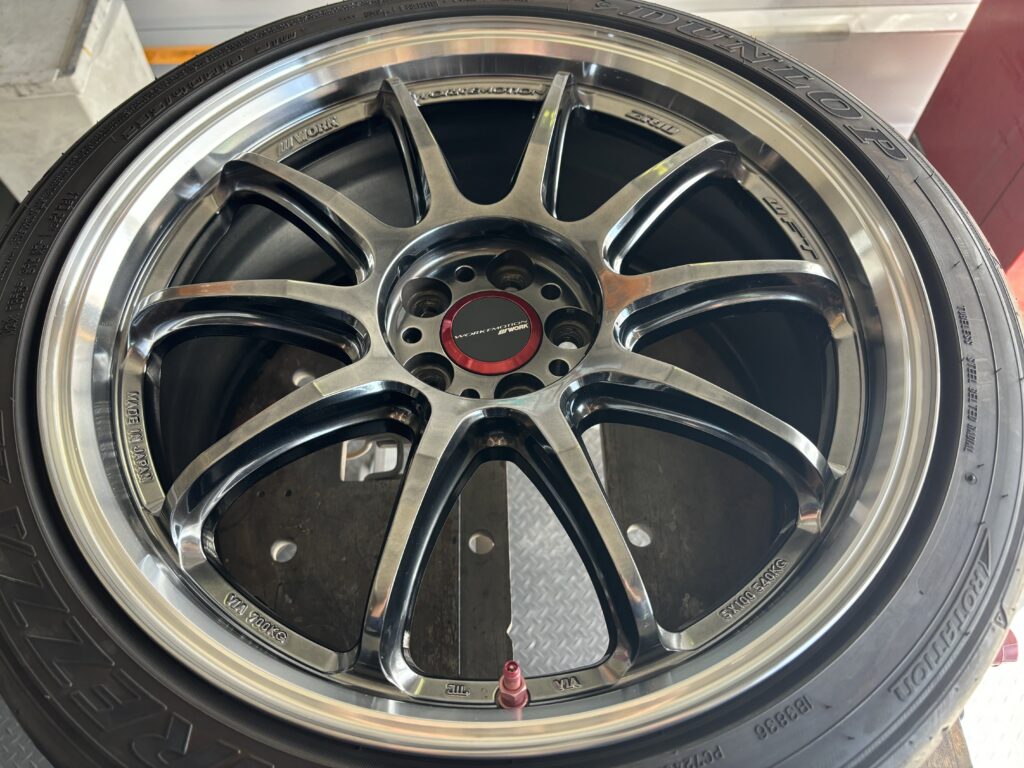 本日は86TRDコンプリートカー14R-60に装着のワークエモーションZR10ホイールガリキズをリムポリッシュ切削研磨でリペアさせていただきました。