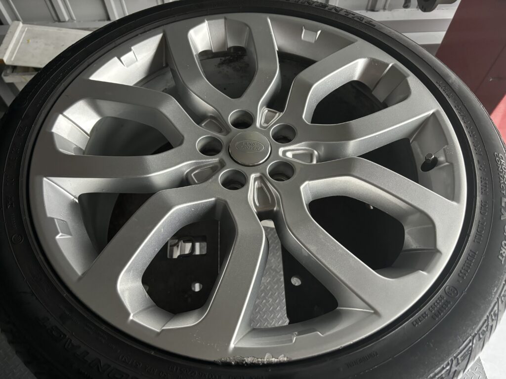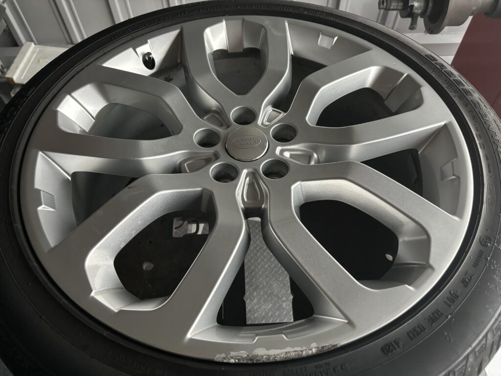 本日はレンジローバー スポーツの純正アルミホイールガリキズ2本をアルミ硬化パテを充填してシルバー塗装でリペアさせていただきました。