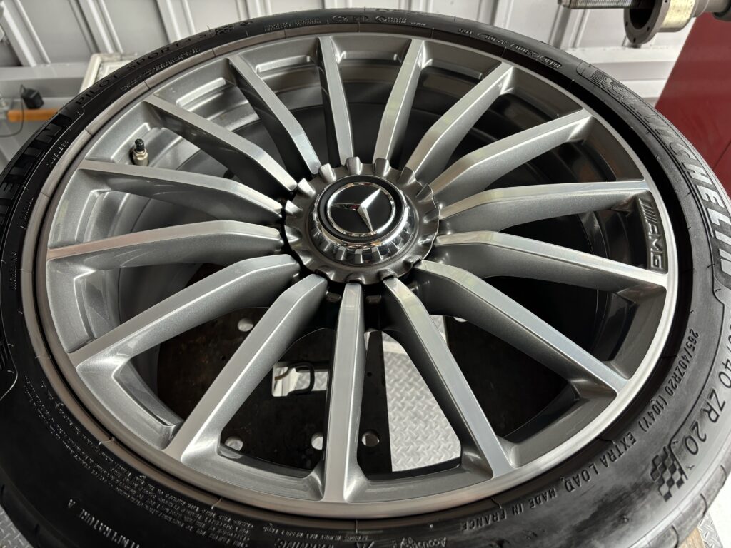 本日はメルセデス・ベンツGT43の純正ガンメタ/ダイヤモンドカットホイールガリキズをポリッシュリム全周切削研磨でリペアさせていただきました。