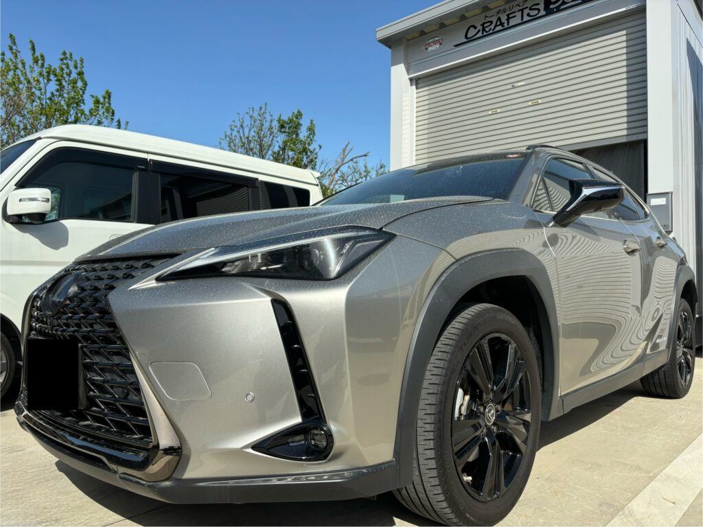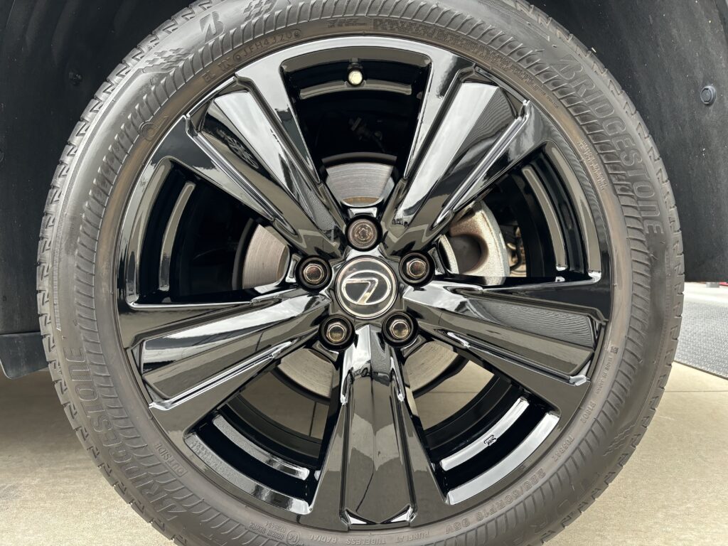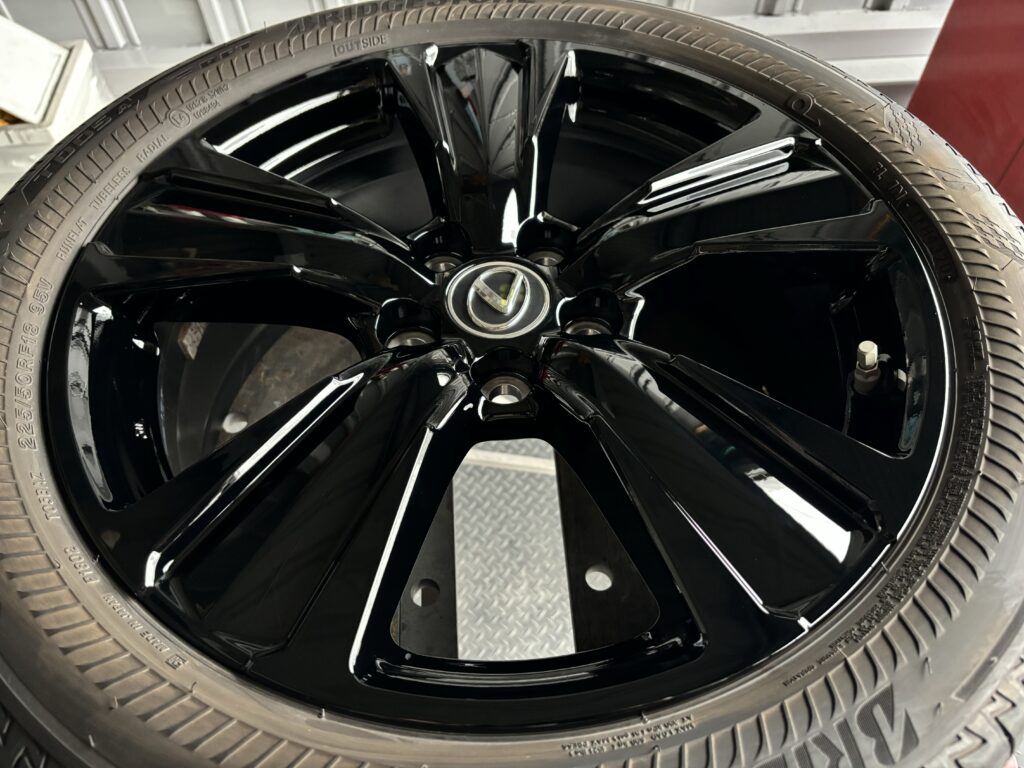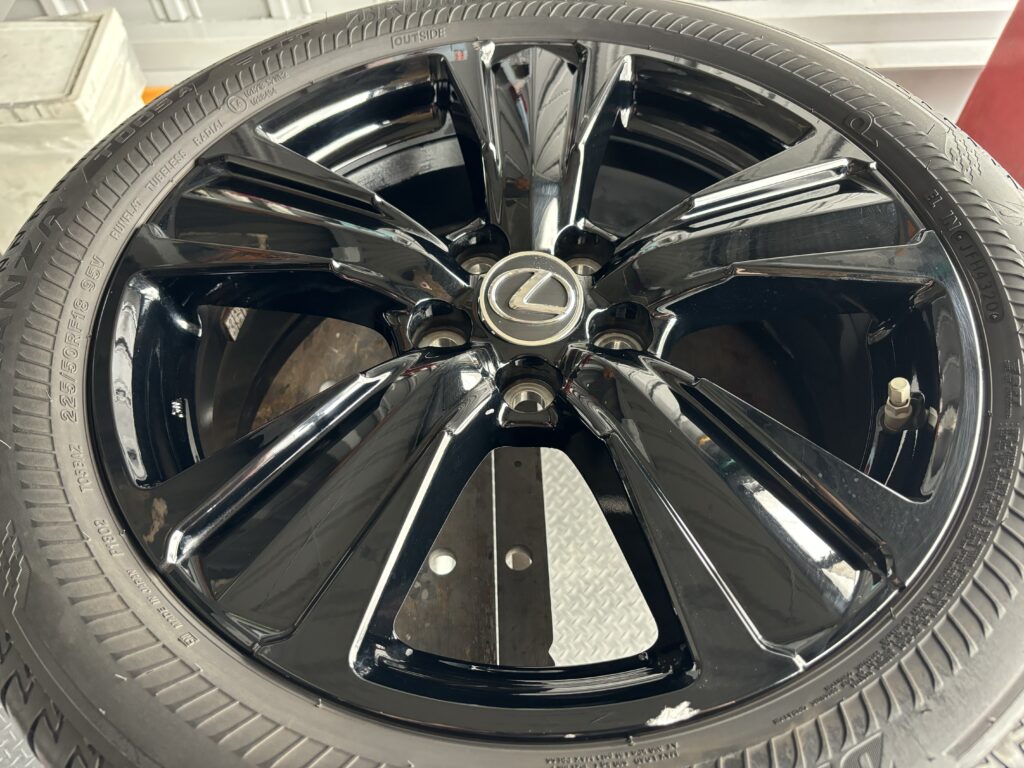 本日はレクサスUX250hの純正アルミホイールガリキズをブラック塗装でリペアさせていただきました。
