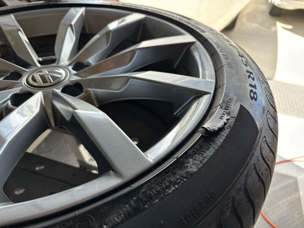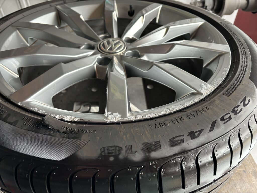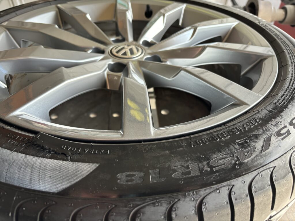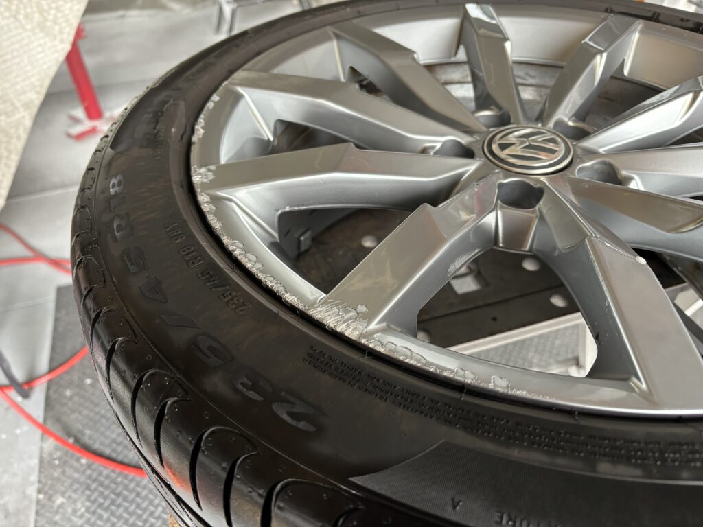 本日はフォルクスワーゲン・パサートの純正アルミホイールガリキズをアルミ硬化パテを充填して形状を整えガンメタ塗装でリペアさせていただきました。