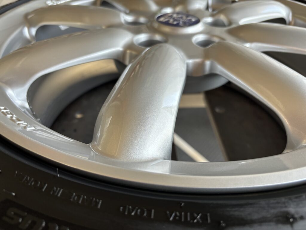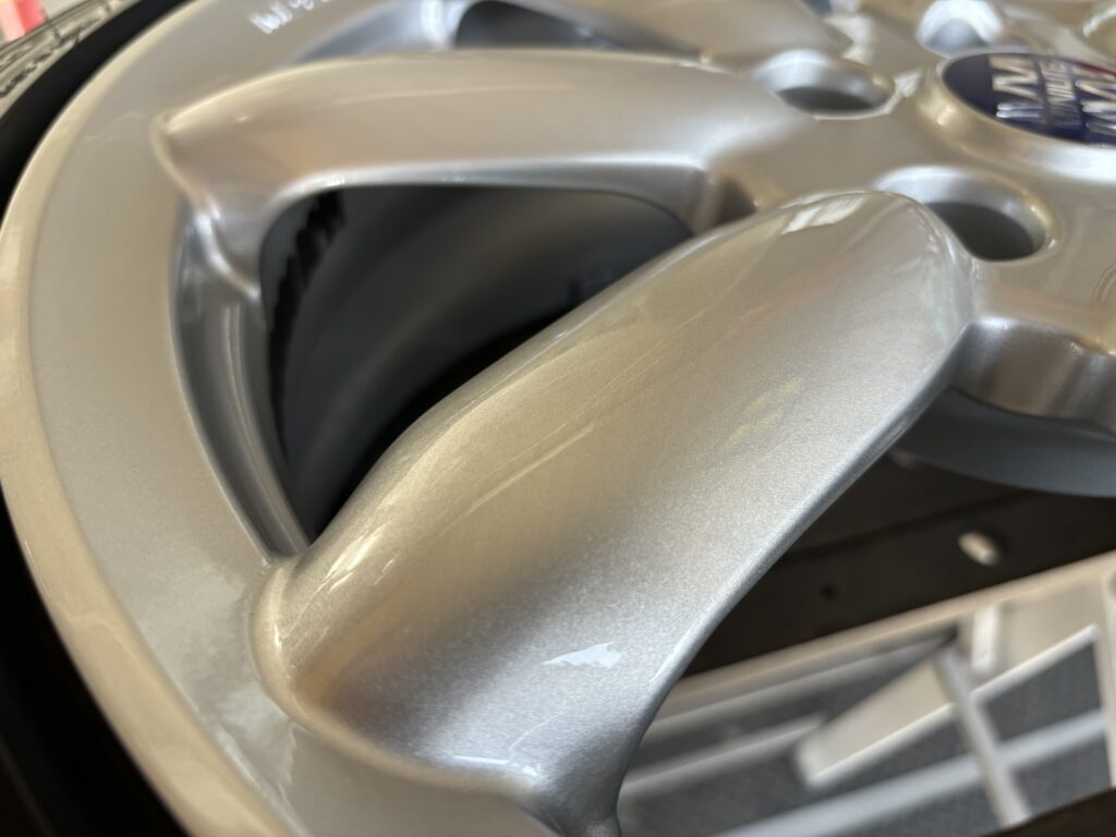 本日はミニクーパーDに装着のミニライトMC-50アルミホイールガリキズをシルバー塗装でリペアさせていただきました。