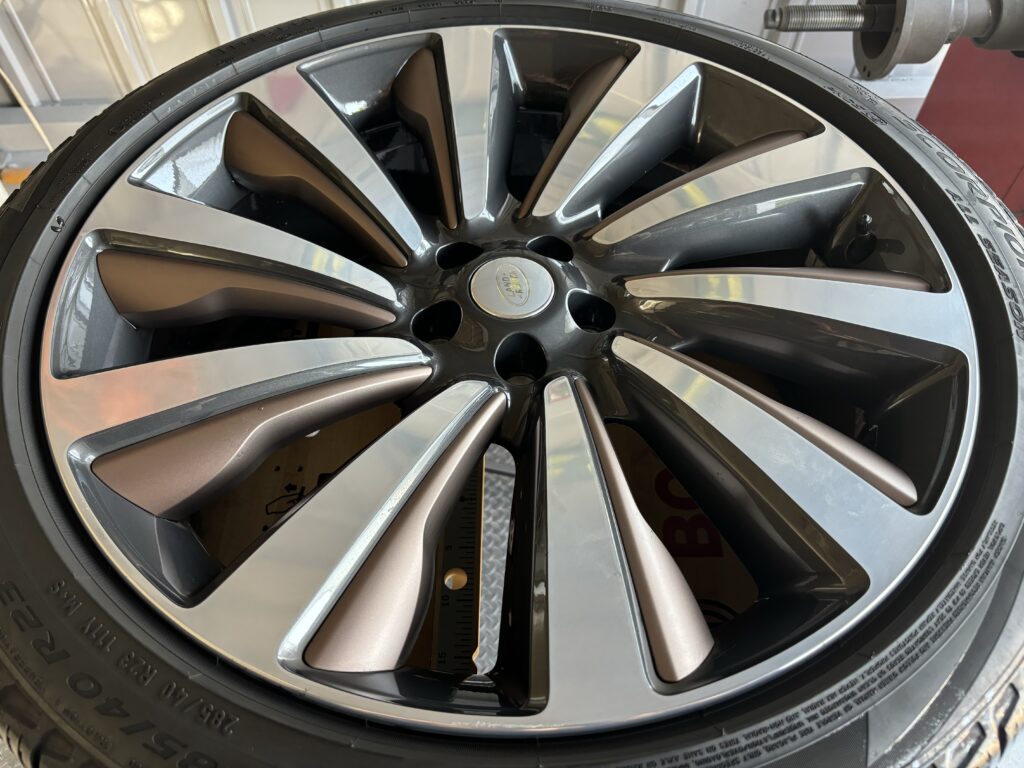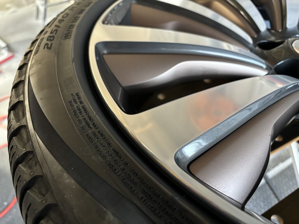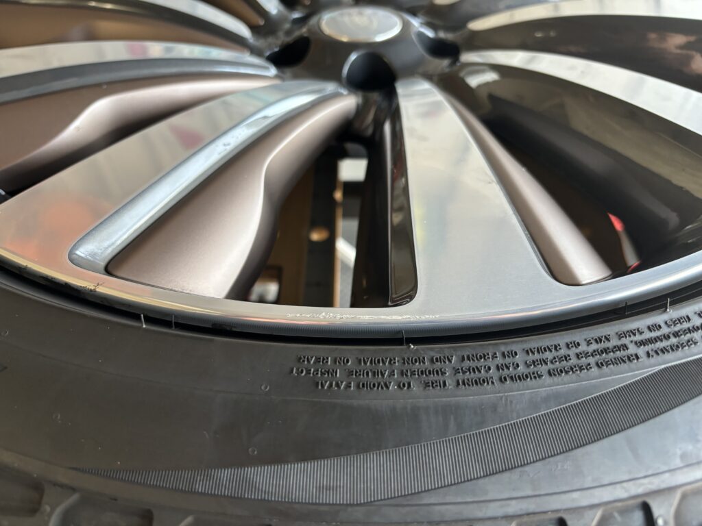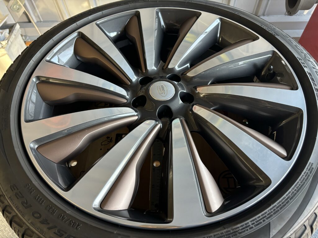 本日はレンジローバーの純正ガンメタ/ポリッシュホイールキズを部分切削研磨でリペアさせていただきました。