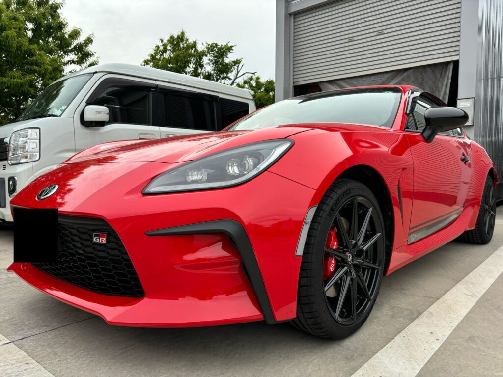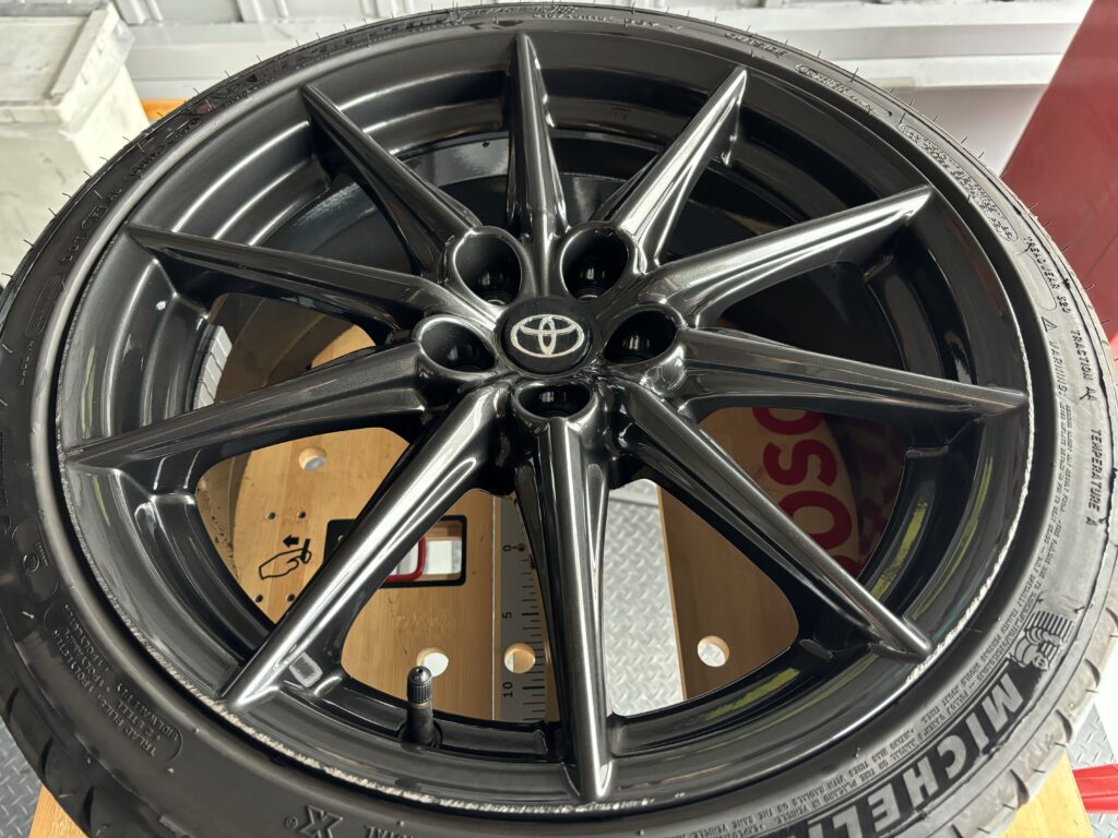本日はトヨタGR86特別仕様車”40th Anniversary Limited”の純正アルミホイールガリキズをダークグレーメタリック塗装でリペアさせていただきました。