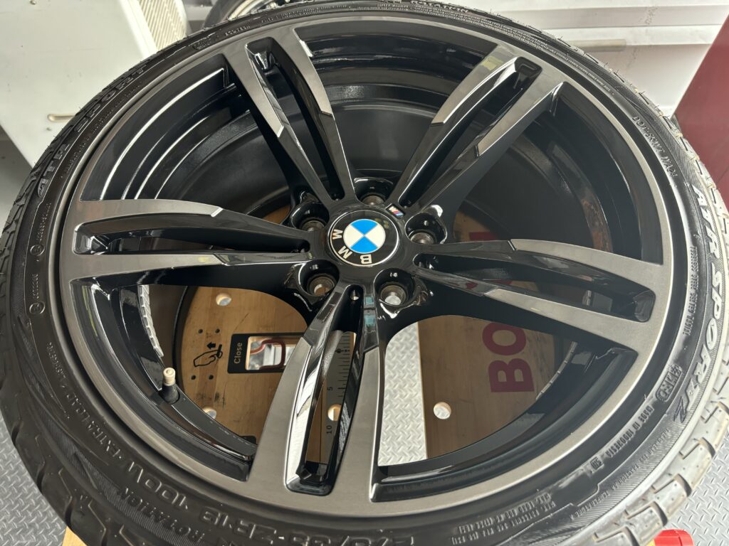 本日はBMW販売ディーラーからM3の純正ブラック/ダイヤカットブラッククリアー仕上げホイールのガリキズをアルミ硬化パテを充填してブラッククリアー風ポリッシュ塗装でリペアさせていただきました。