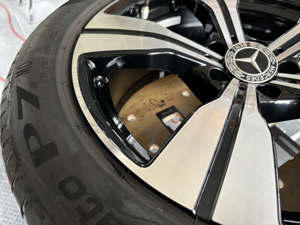 本日はメルセデス・ベンツC220dの純正アルミホイールガリキズをポリッシュ塗装でリペアさせていただきました。