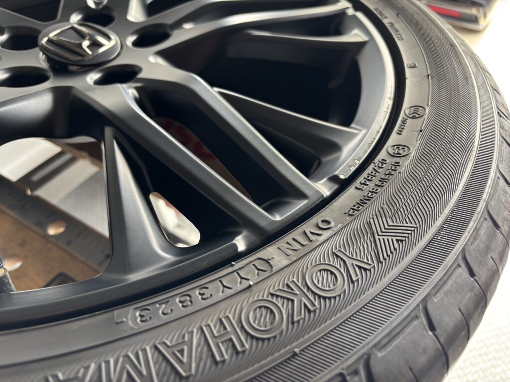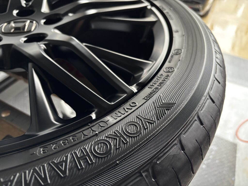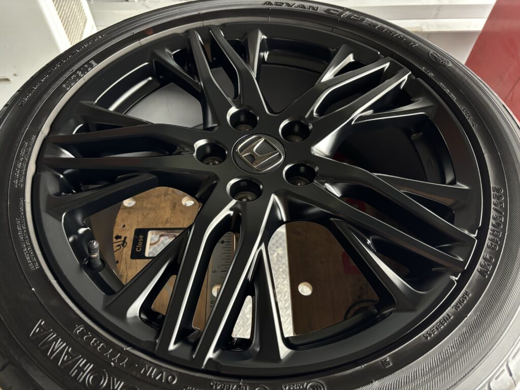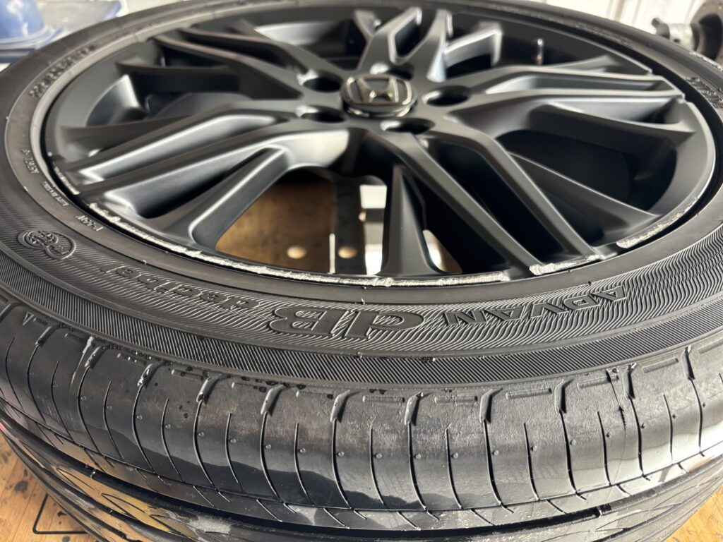 本日はホンダ オデッセイe:HEVアブソルート・EXブラックエデイションの純正アルミホイールガリキズをマットブラック塗装でリペアさせていただきました。