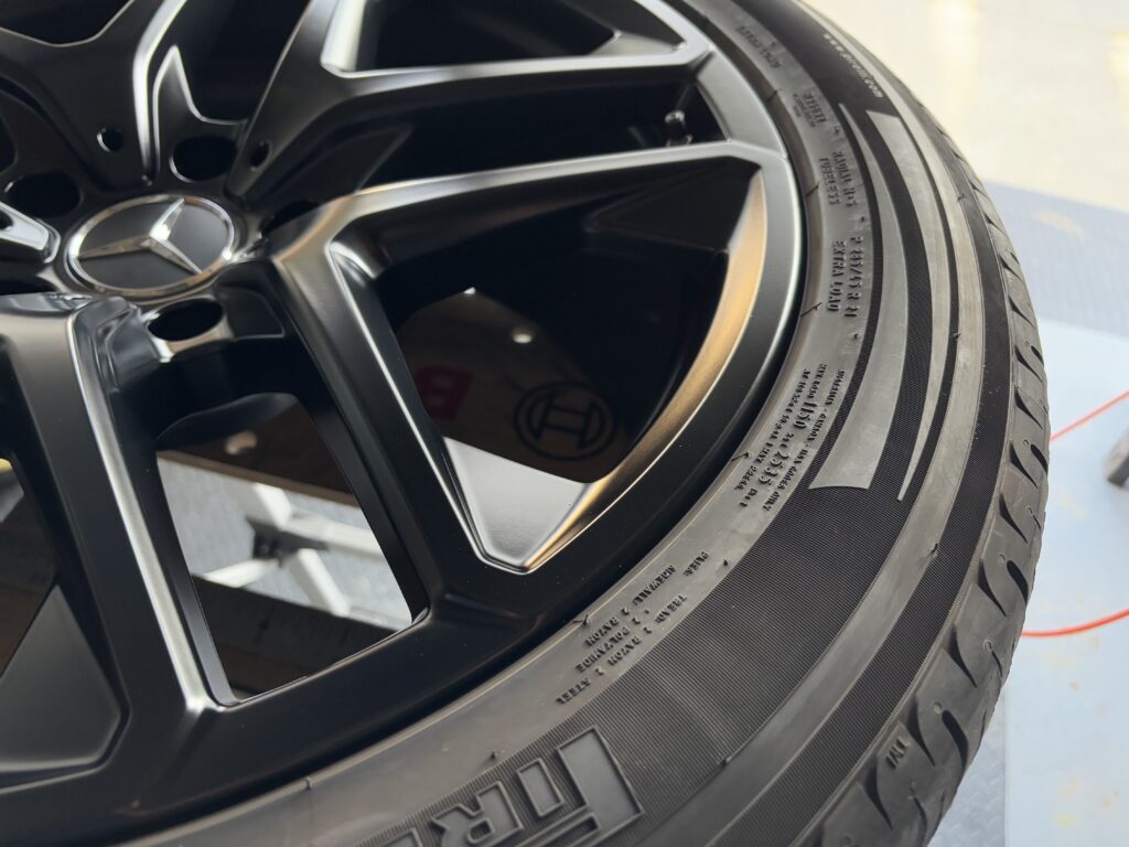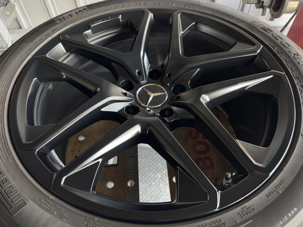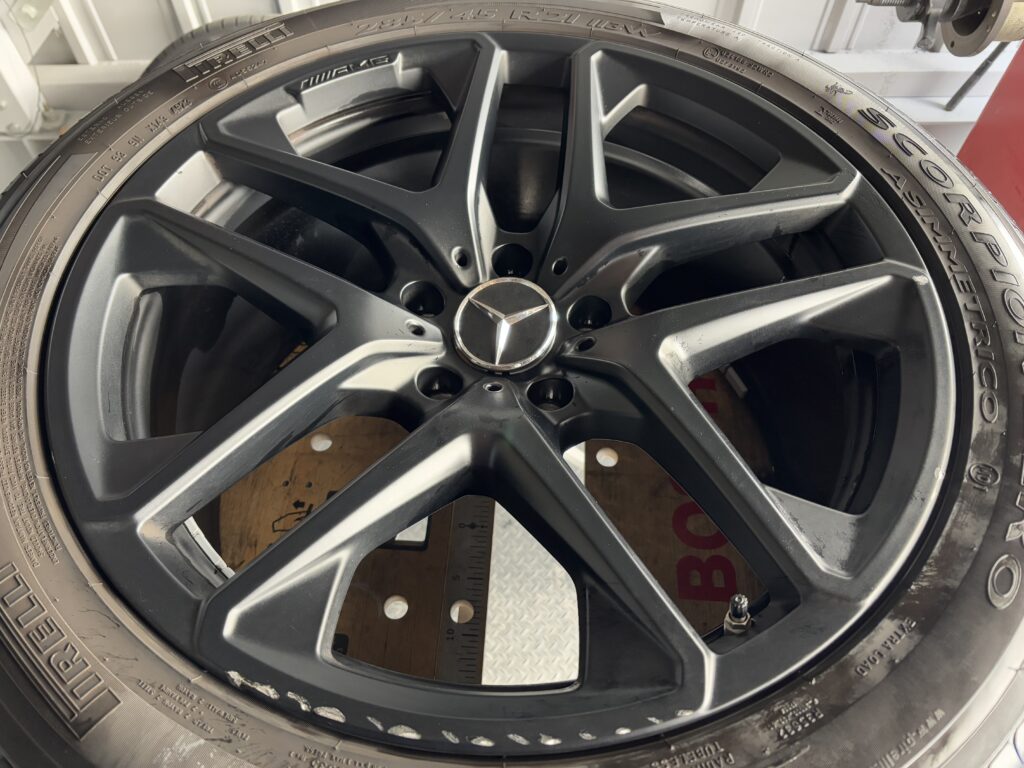 本日はメルセデス-AMG G63の純正アルミホイールガリキズをマットブラック塗装でリペアさせていただきました。