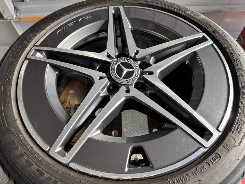 本日はメルセデスC180の純正ガンメタ/ダイヤカットアルミホイールガリキズをアルミ硬化パテを充填してポリッシュ塗装&ガンメタ塗装&ポリッシュ切削研磨でリペアさせていただきました。