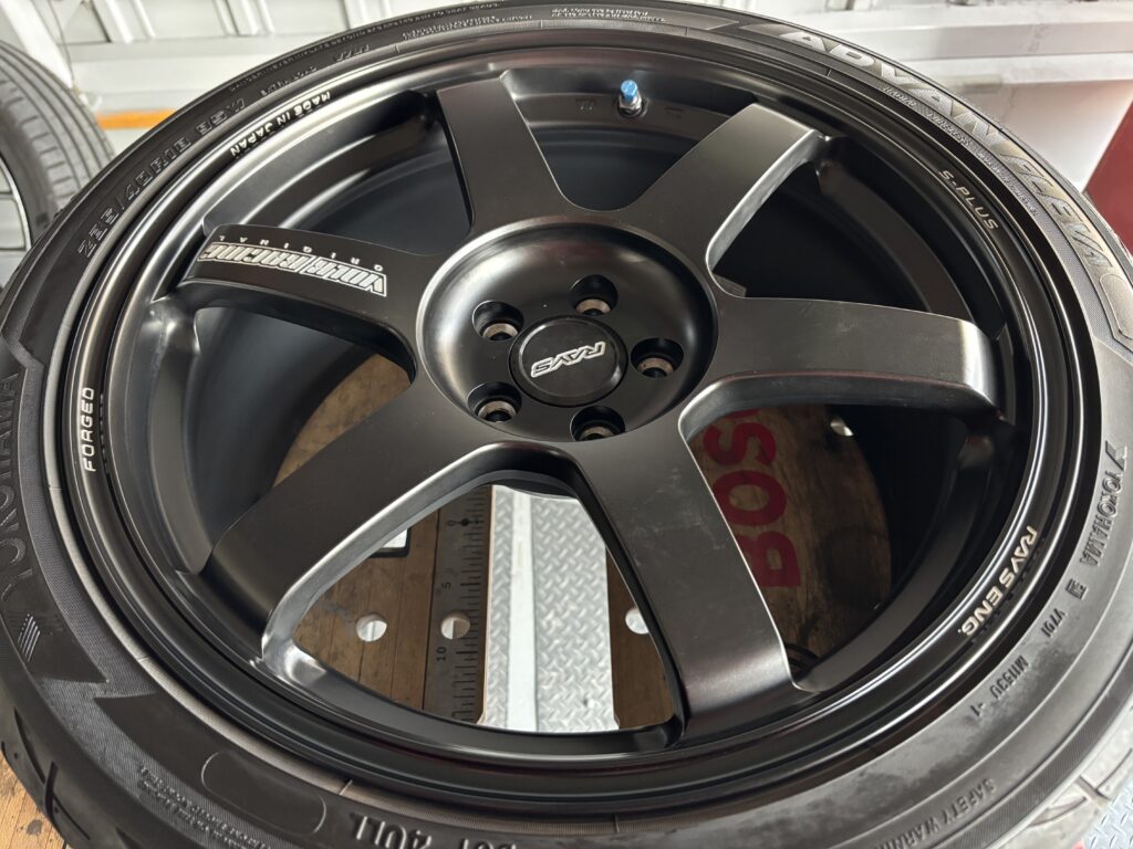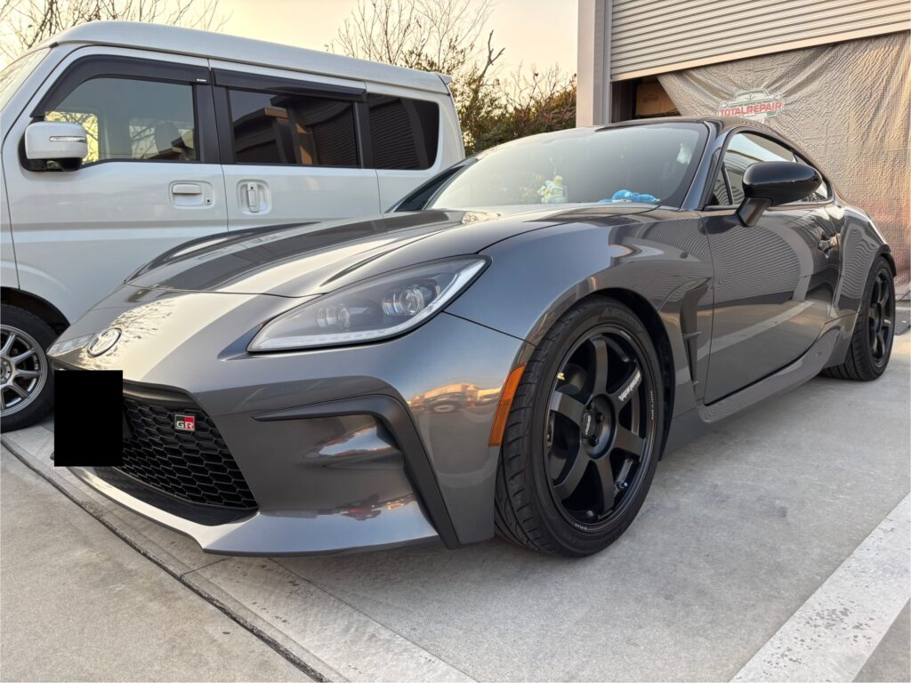 本日はトヨタGR86に装着のRAYS VOLK TE37 SAGA S-plusアルミホイールガリキズ をアルミ硬化パテで形状を整えダークメタリック塗装でリペアさせていただきました。