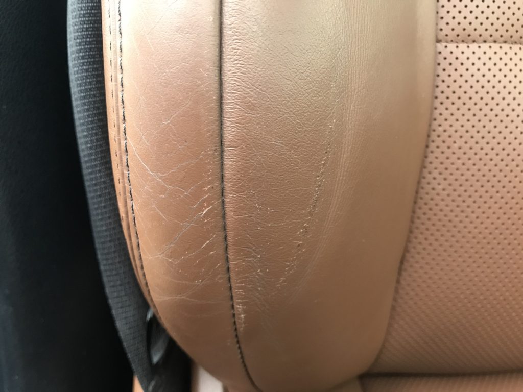 業者様からのご依頼でレクサスGSの本革シートリペアをさせていただきました、劣化は乗降りに必ず接触するシートクッションサイド&シートバックサイドの部分です。