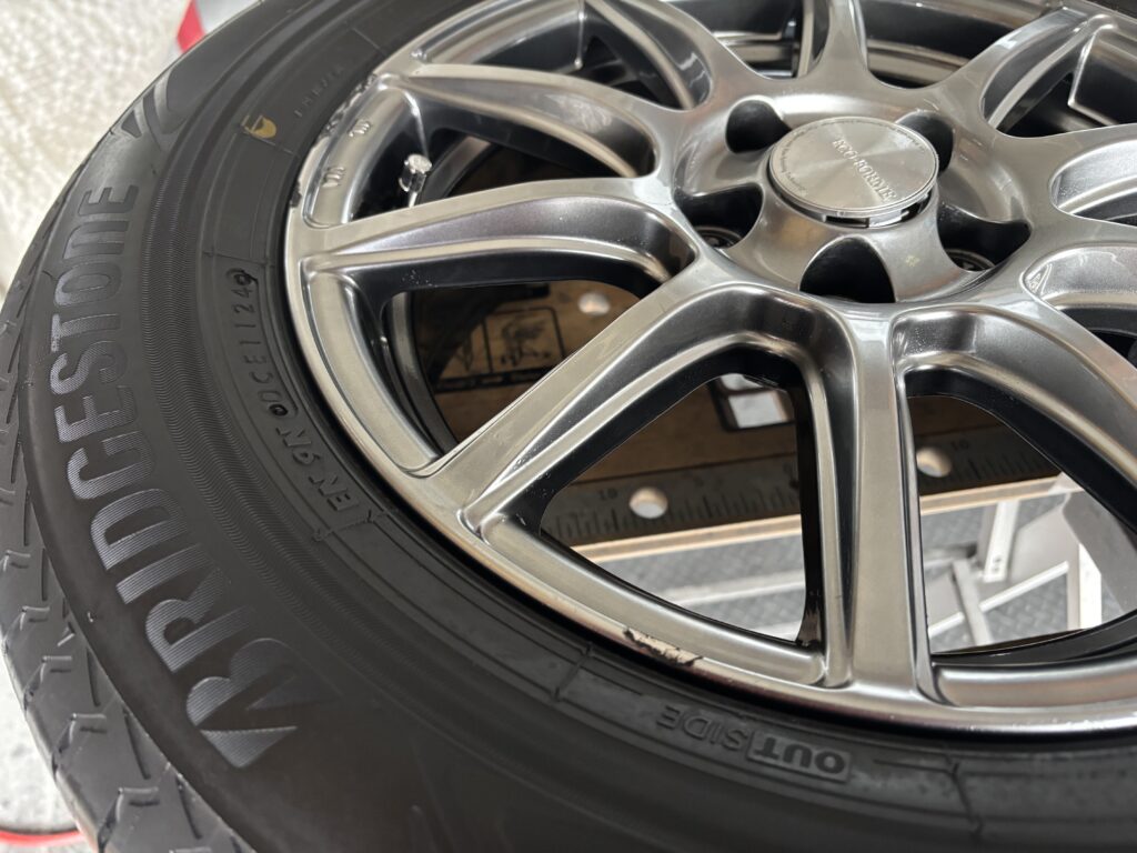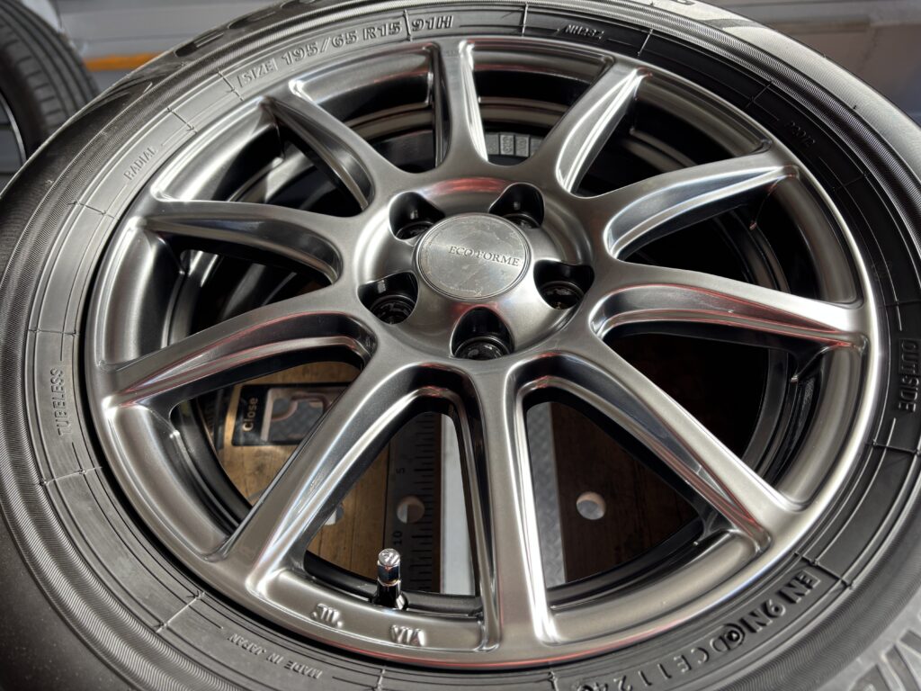 本日はトヨタ プリウスに装着のECO FORME CRS131アルミホイールガリキズをハイパーシルバー塗装でリペアさせていただきました。