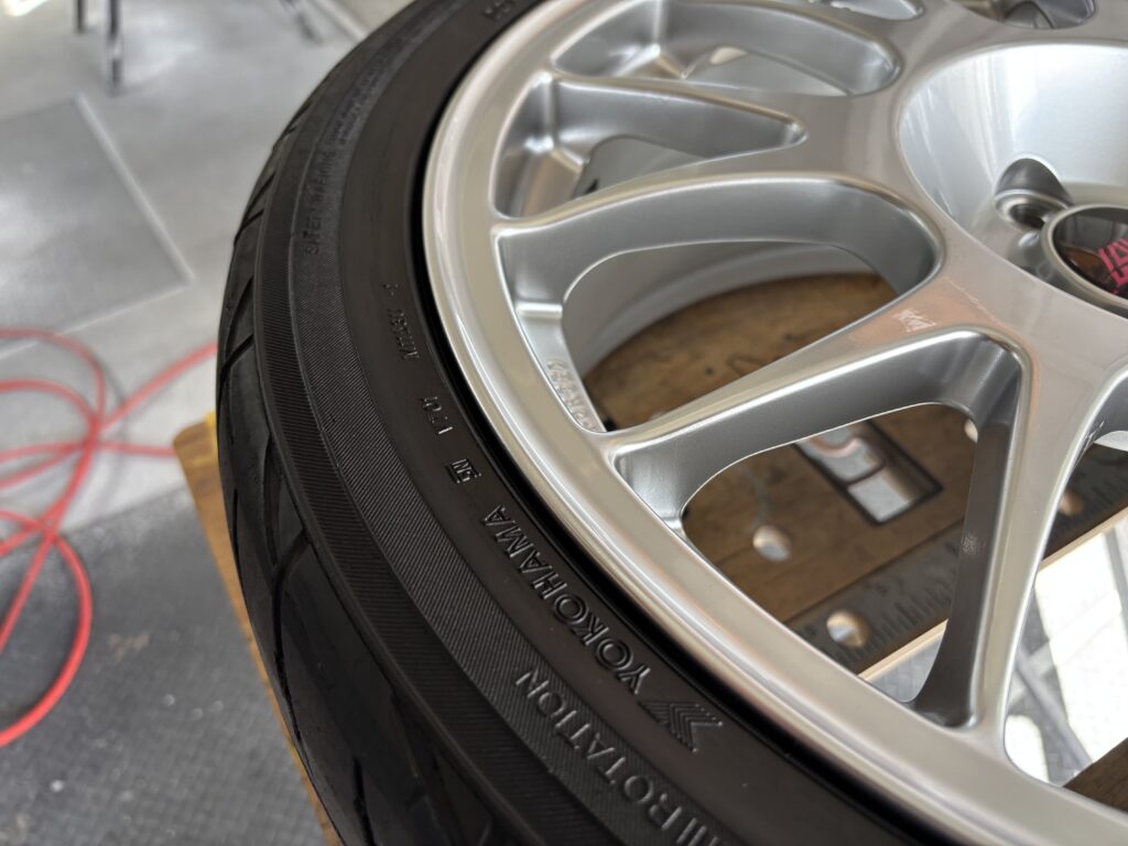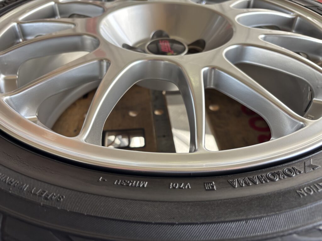本日はスバル・STI純正アルミホイールガリキズを下地にブラック色を入れて特殊な塗料を吹きかけて仕上げるハイパーシルバー塗装でリペアさせていただきました。