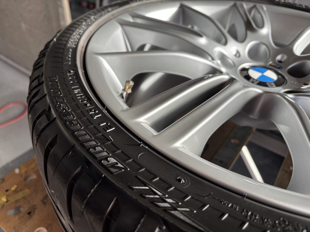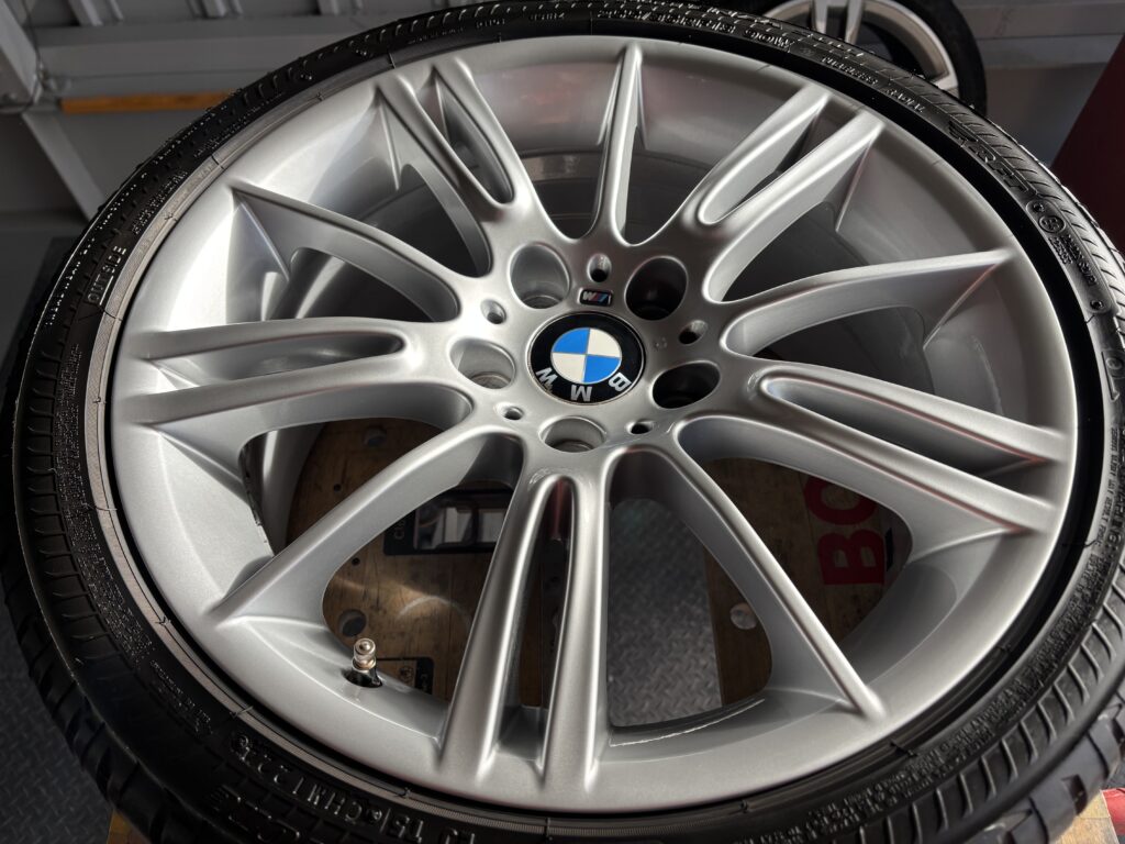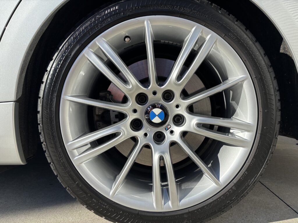 本日はBMW335i M sportの純正アルミホイールガリキズを特殊なシルバー塗料で塗装リペアさせていただきました。