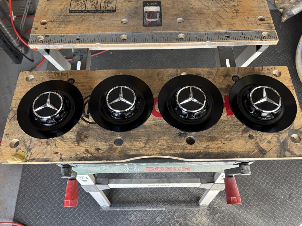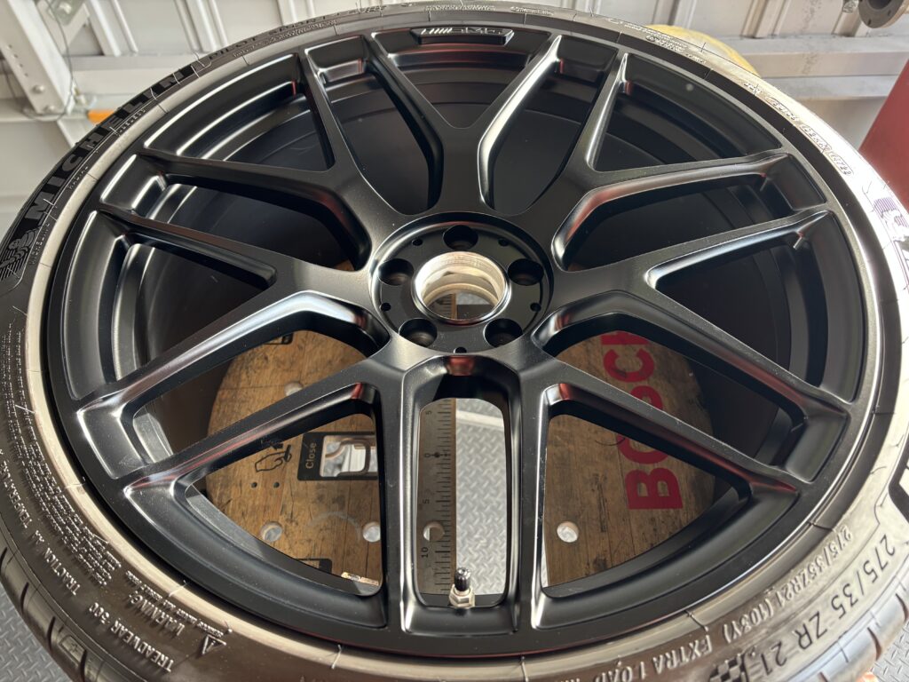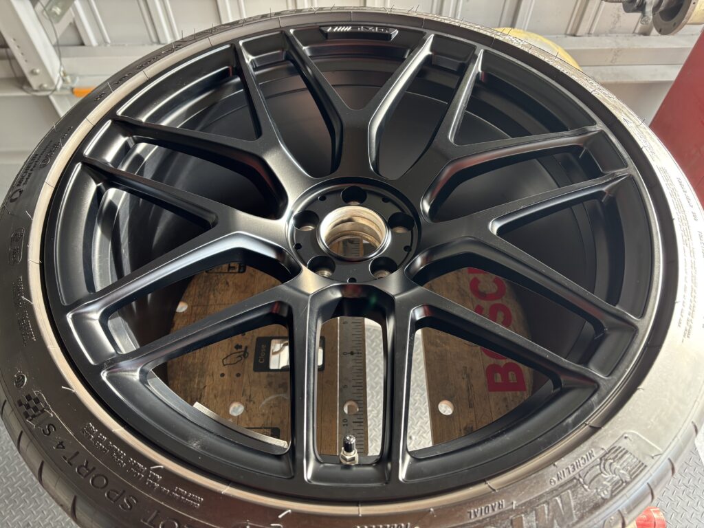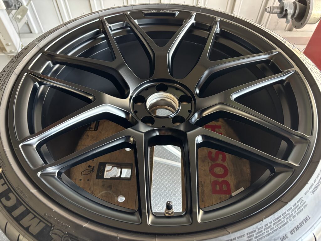 本日はメルセデス・ベンツAMG GT63Sの純正アルミホイールをマットブラック塗装でカラーチェンジさせていただきました。