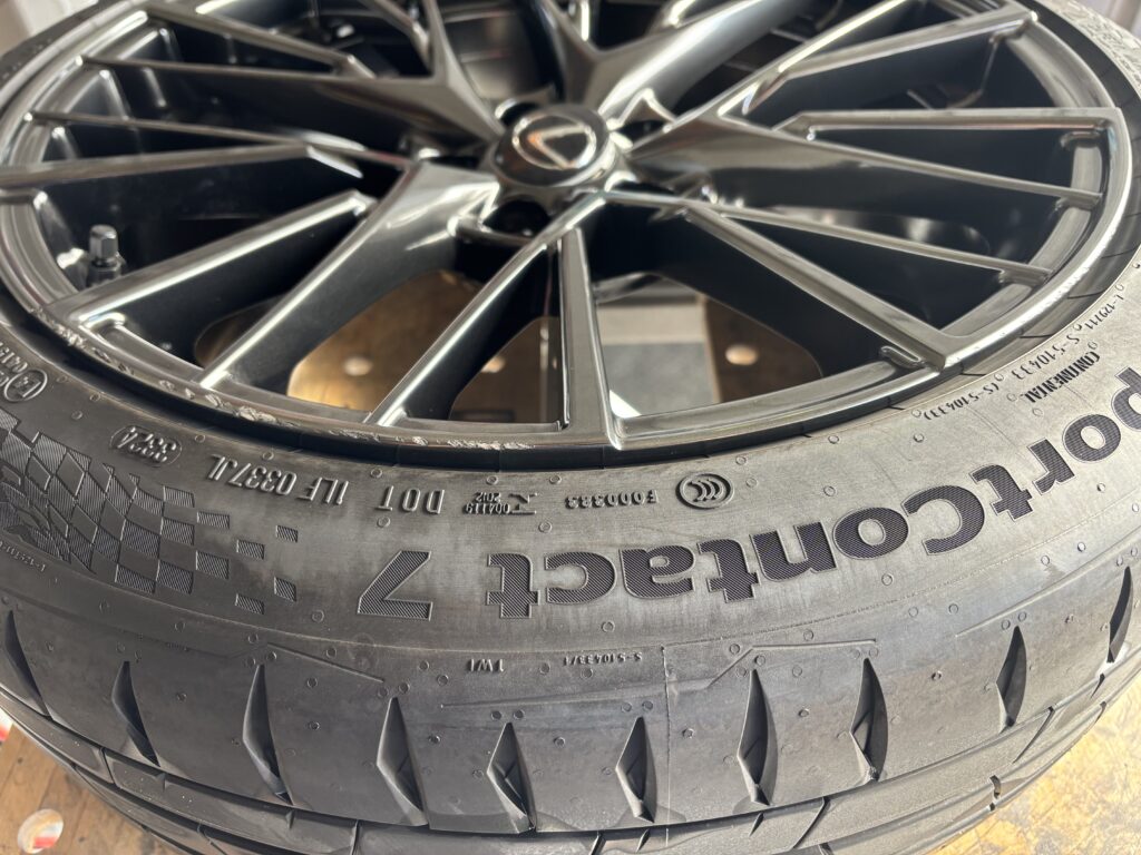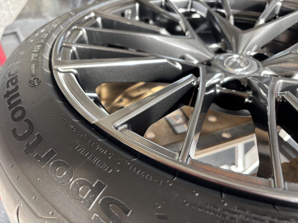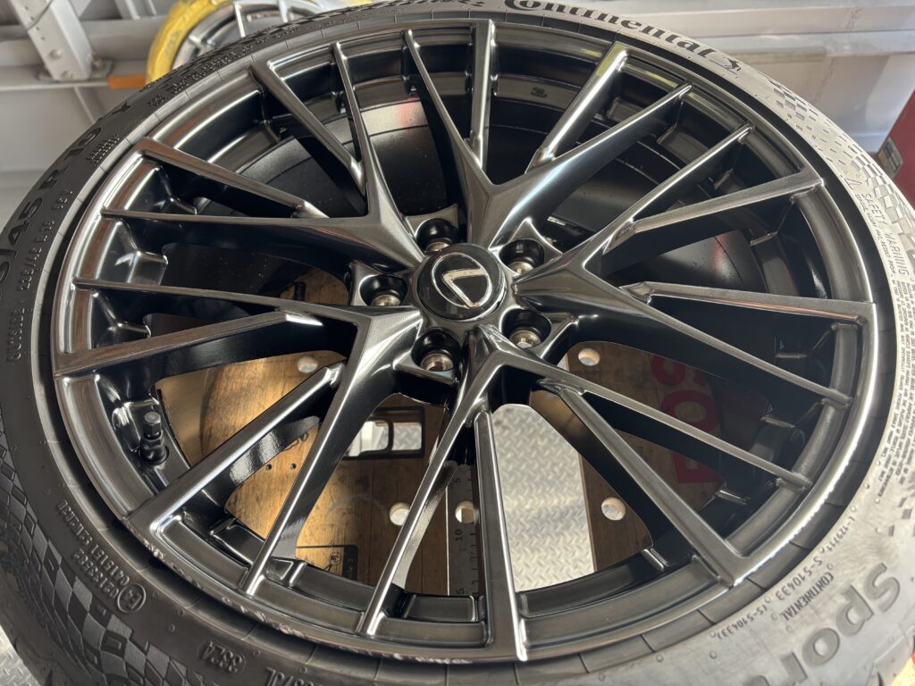 本日はレクサスLBX MORIZO RRの純正鍛造アルミホイールガリキズを特殊なスーパーグロスブラックメタリック塗装でリペアさせていただきました。