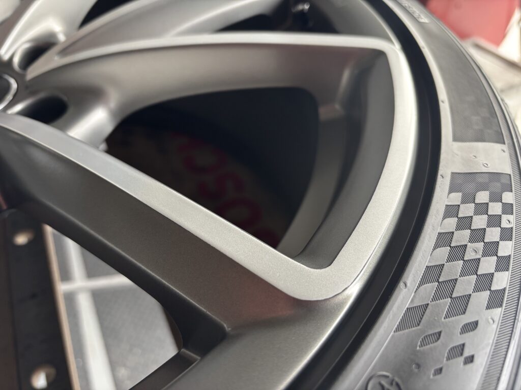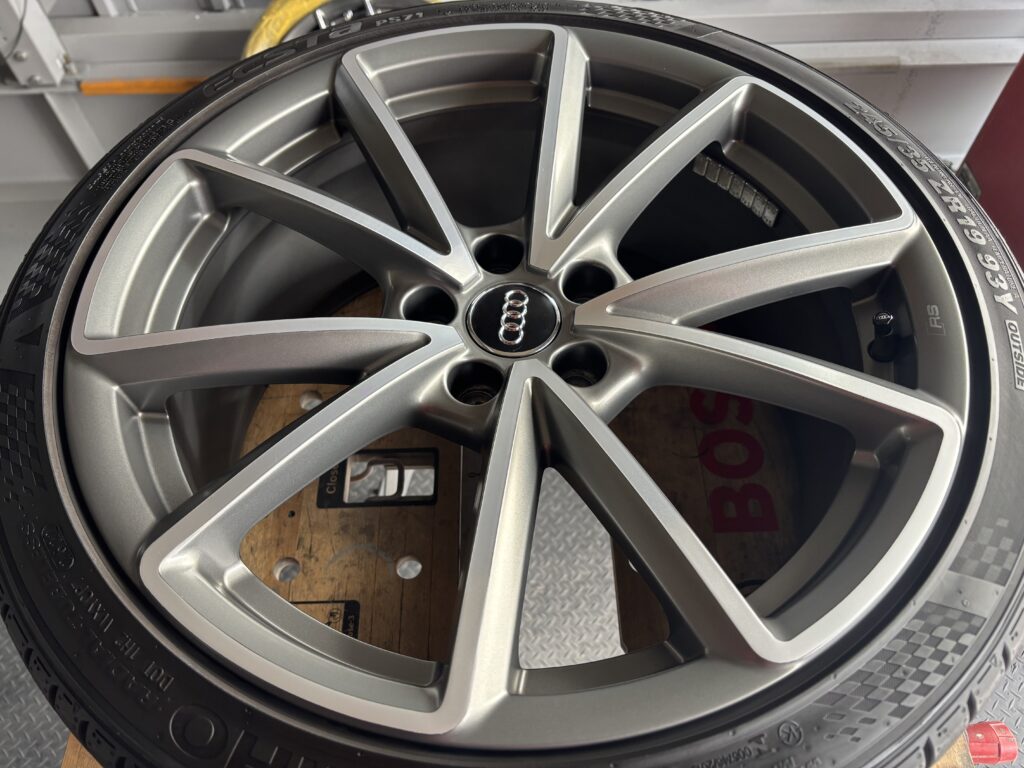 本日はAUDI RS純正マットガンメタ/ポリッシュアルミホイールガリキズをガンメタ塗装&ポリッシュ塗装でリペアさせていただきました。