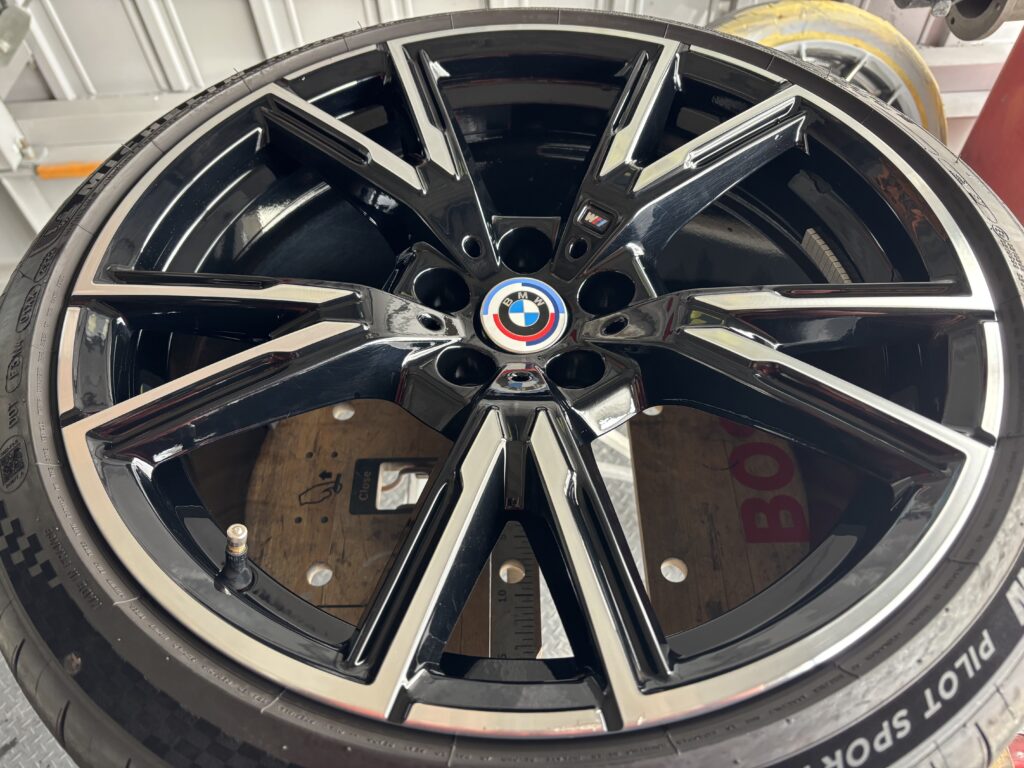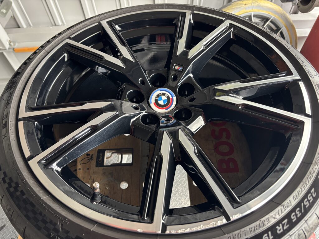 本日はBMW M240iの純正ブラック/ダイヤカットアルミホイールガリキズ 2本をポリッシュ塗装&ポリッシュ切削研磨でリペアさせていただきました。