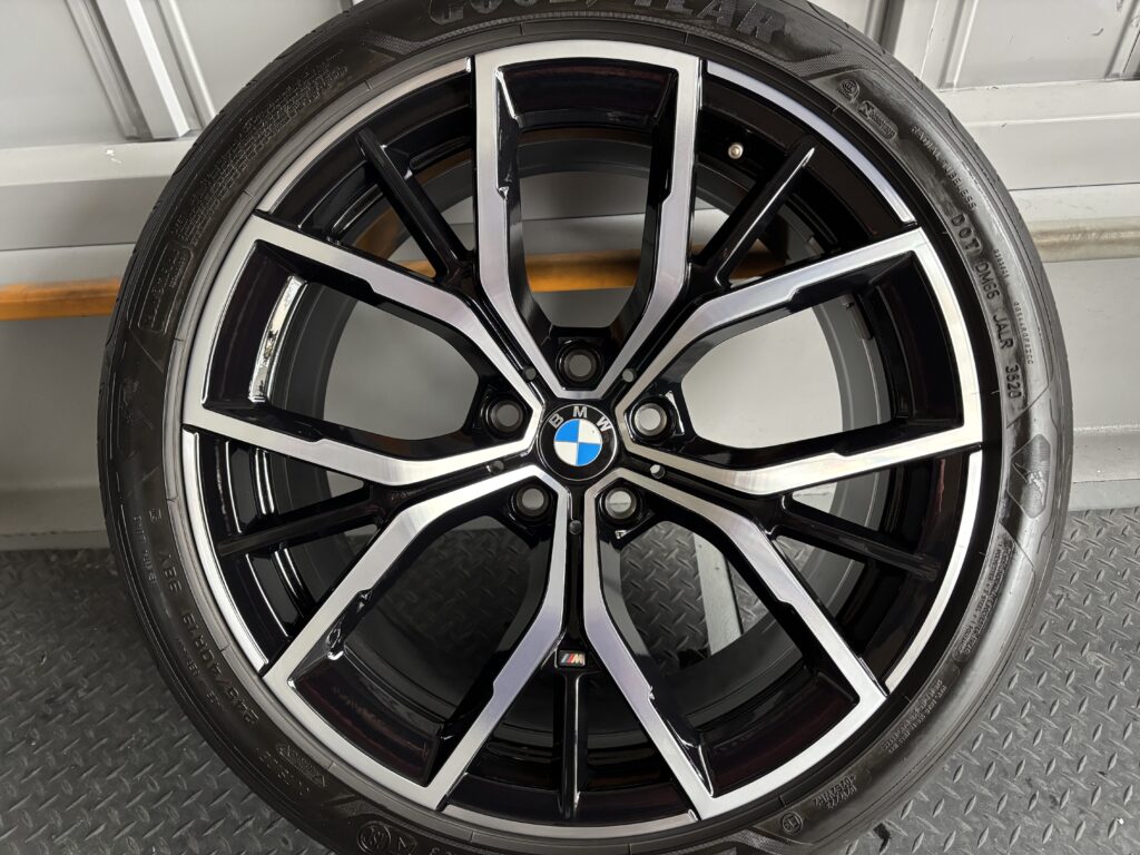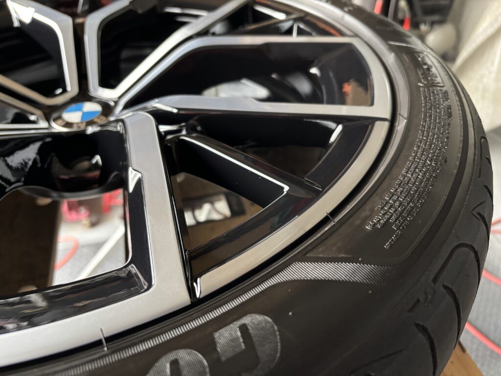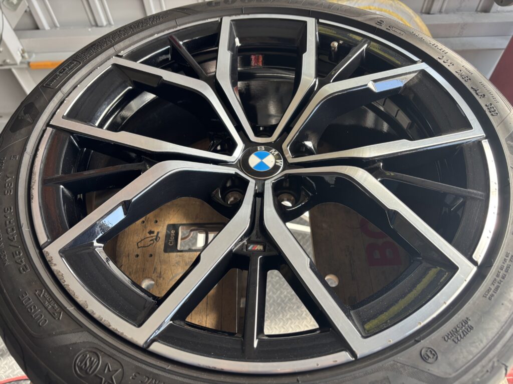 本日はBMW523dの純正ブラック/ダイヤカットホイールガリキズをブラック塗装&ポリッシュ塗装&ポリッシュ切削研磨でリペアさせていただきました。