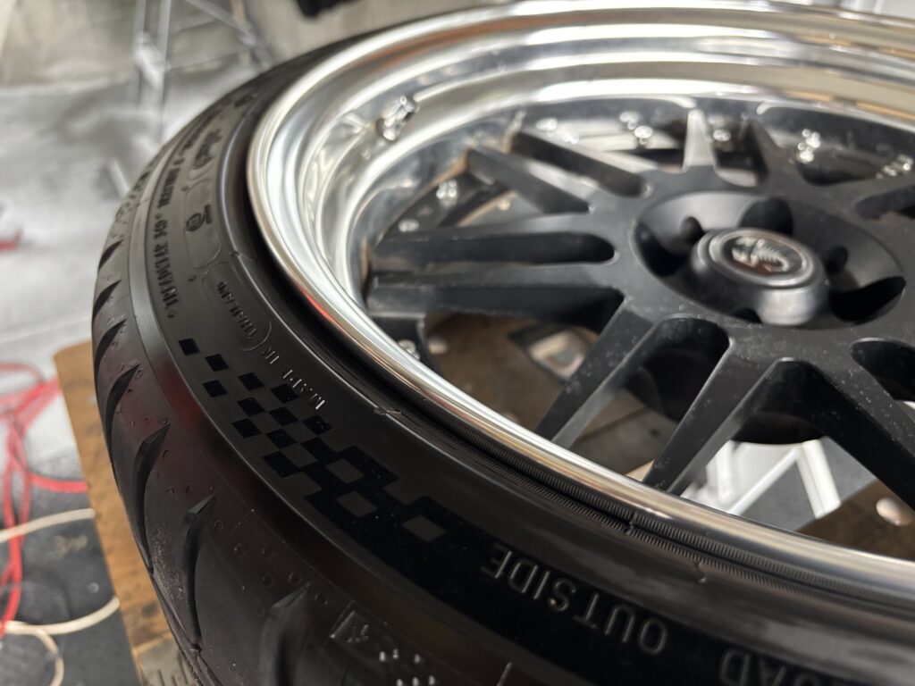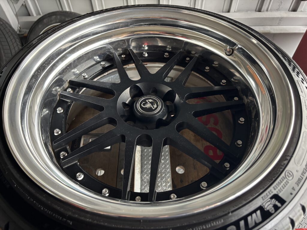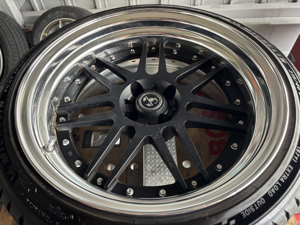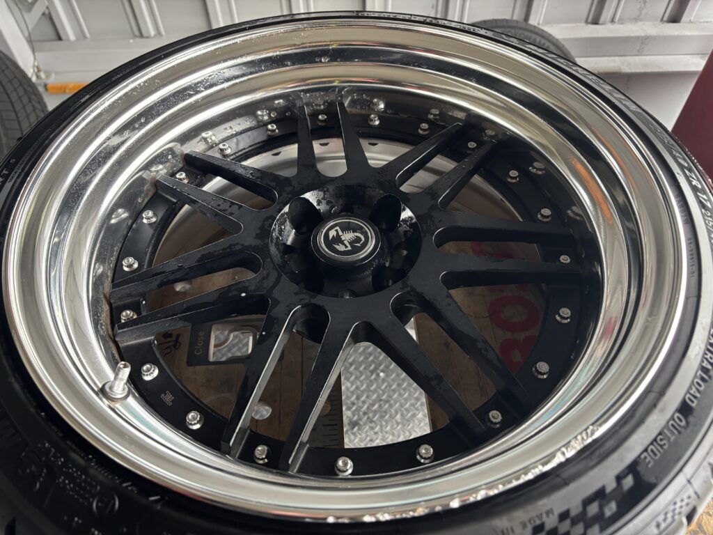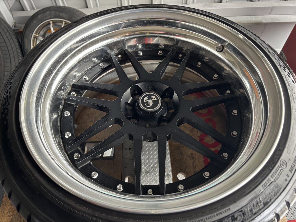 本日はABARTH 595COMPETIZIONEに装着されたTHREEHUNDRED ES-07ホイールアルマイトリムキズ2本を鏡面研磨でリペアさせていただきました。