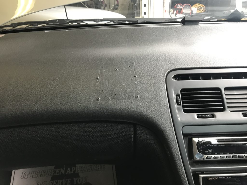 日産フェアレディZ Z32 ダッシュボード ビズ穴 リペア お任せください。神奈川県 横浜市 青葉区 都筑区 鶴見区 神奈川区 西区 中区 南区 保土ケ谷区 磯子区 金沢区 港北区 戸塚区 港南区 旭区 緑区 瀬谷区 栄区 泉区 を中心に近隣の川崎市も対応 アルミホイール修理・キズ・曲がり(歪み)・色変更(カラーチェンジ)とインテリア レザー(革)・合皮・モケット・プラスチックなど車の内装の修理及び修復のプロショップ