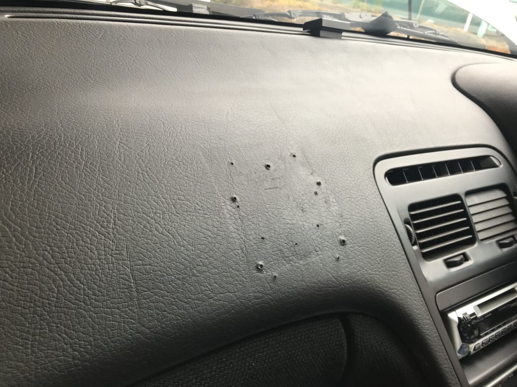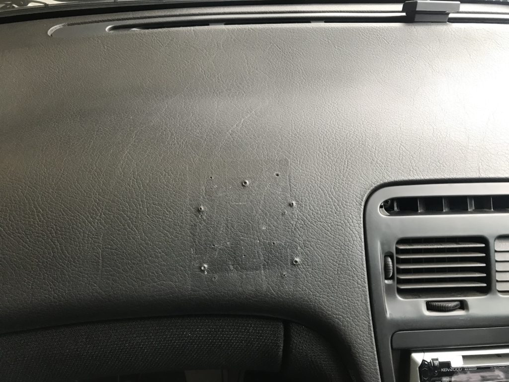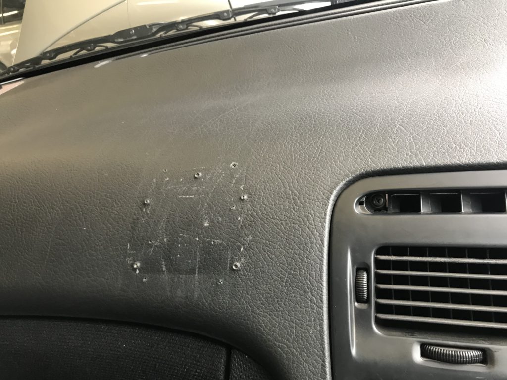 ダッシュボード ナビゲーション取付跡ビス穴(パテ充填整形塗装リペア)