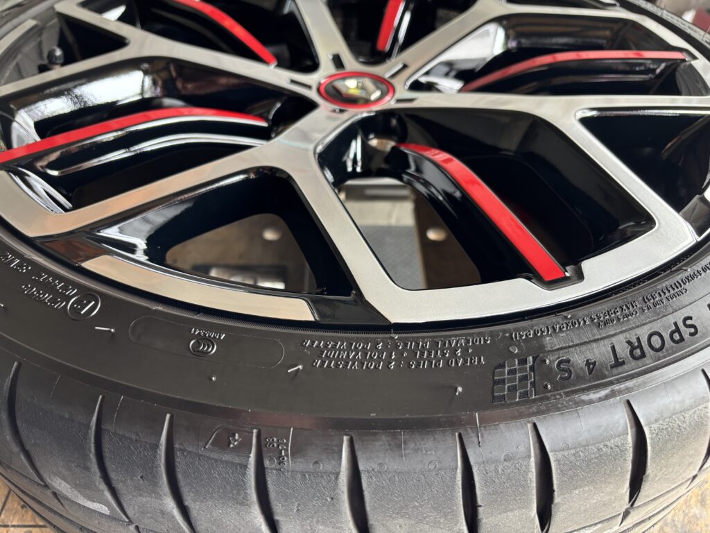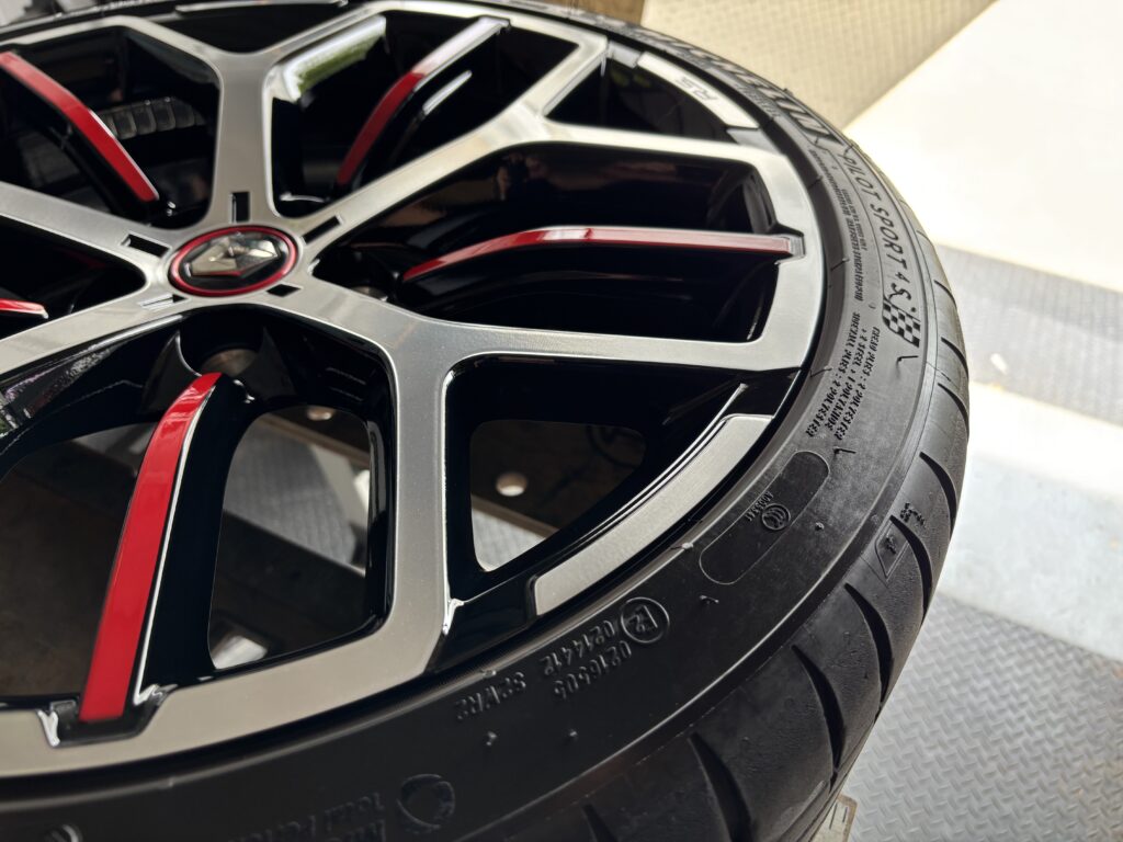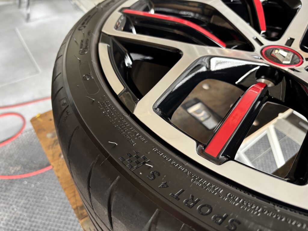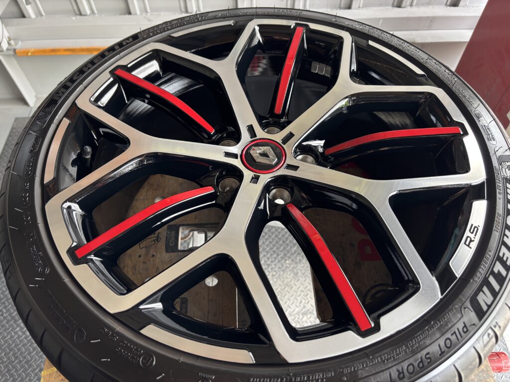 本日はRENAULT MEGANE R.S. TROPHY EDCの純正アルミホイールガリキズをブラック塗装&ポリッシュ塗装でリペアさせていただきました。