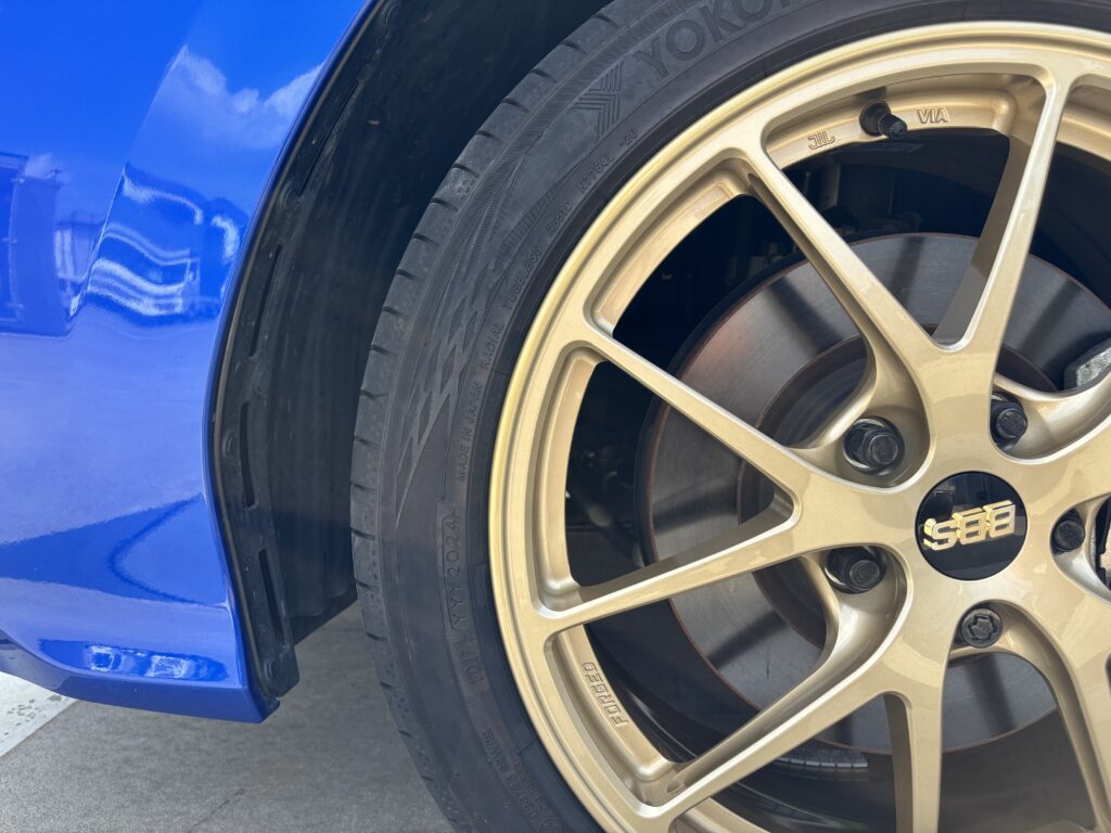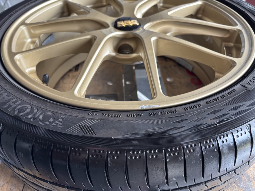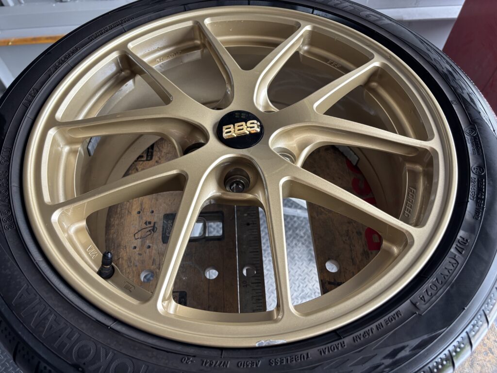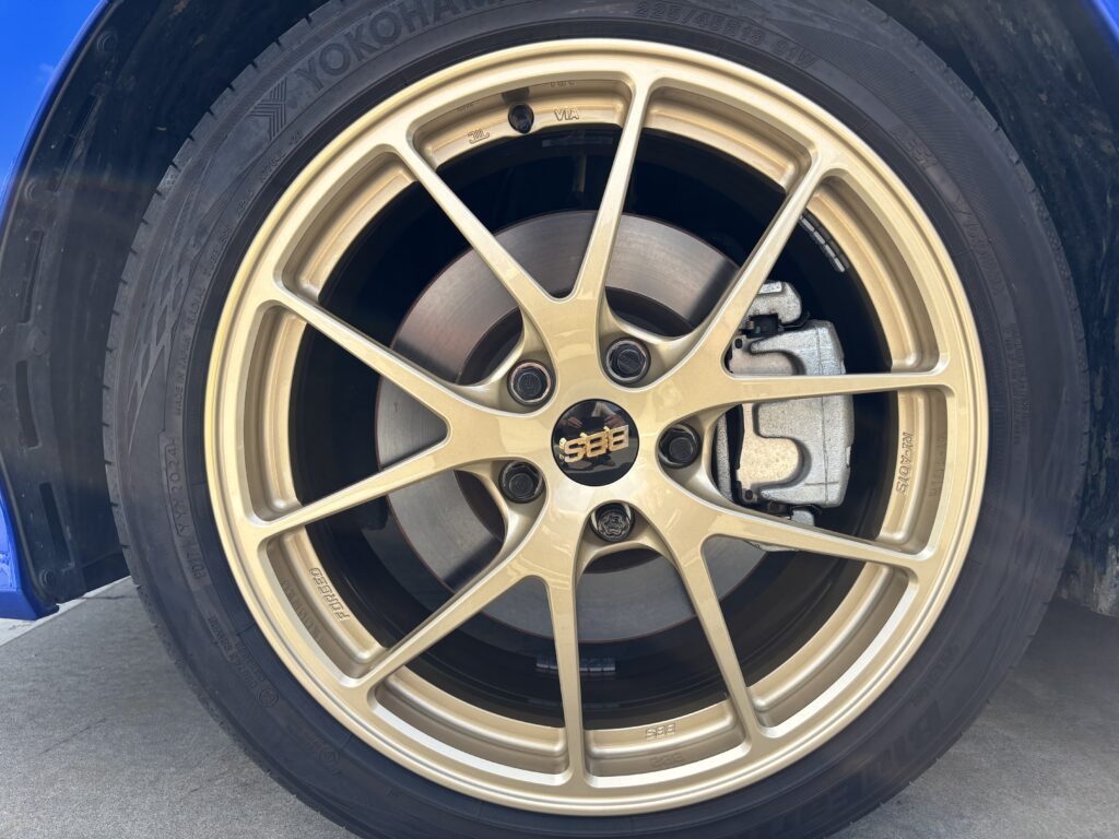 本日はスバル レヴォーグSTIに装着のBBS RI-A019アルミホイールガリキズをゴールド塗装でリペアさせていただきました。