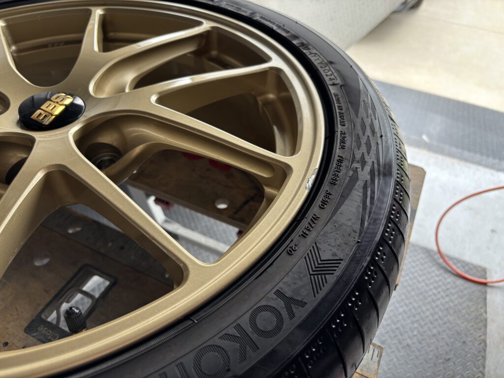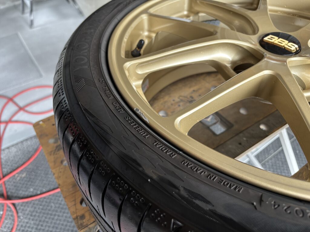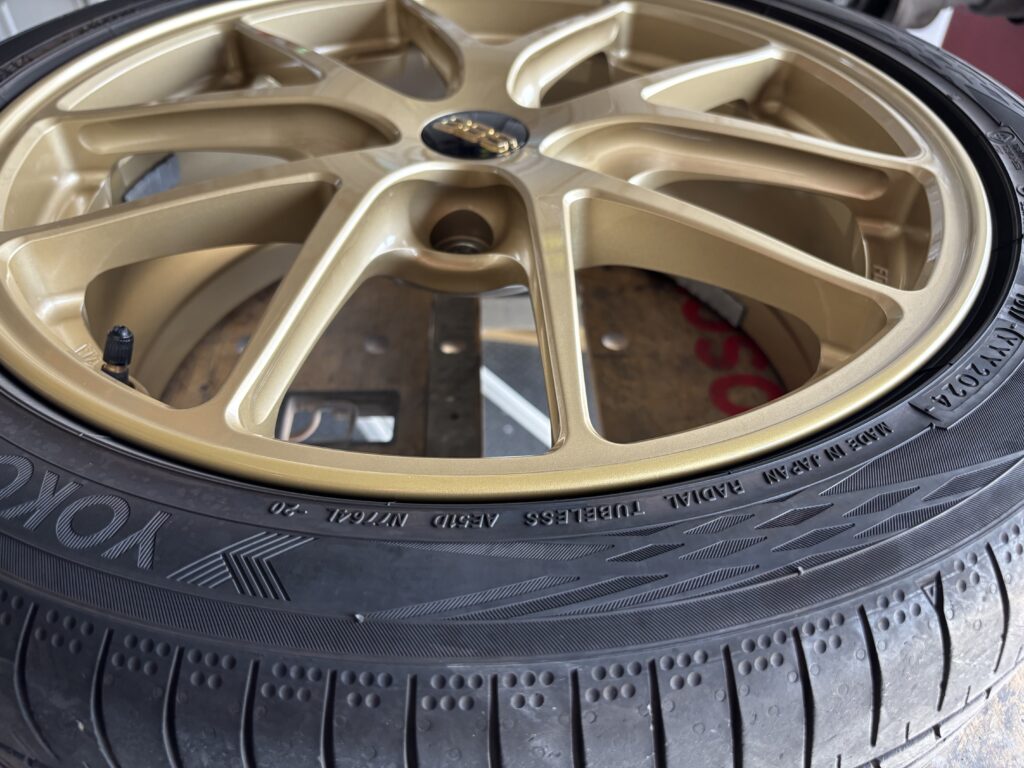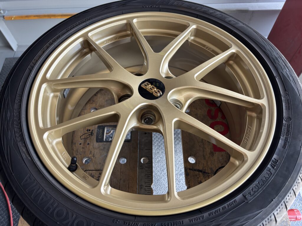 本日はスバル レヴォーグSTIに装着のBBS RI-A019アルミホイールガリキズをゴールド塗装でリペアさせていただきました。