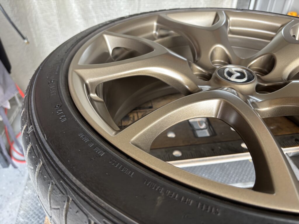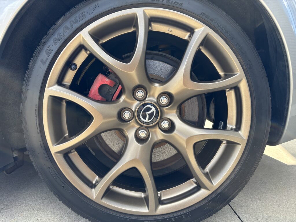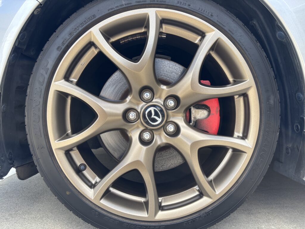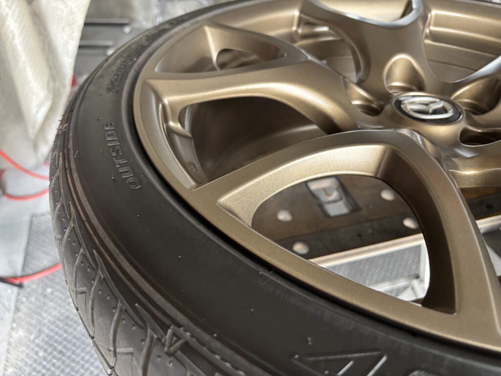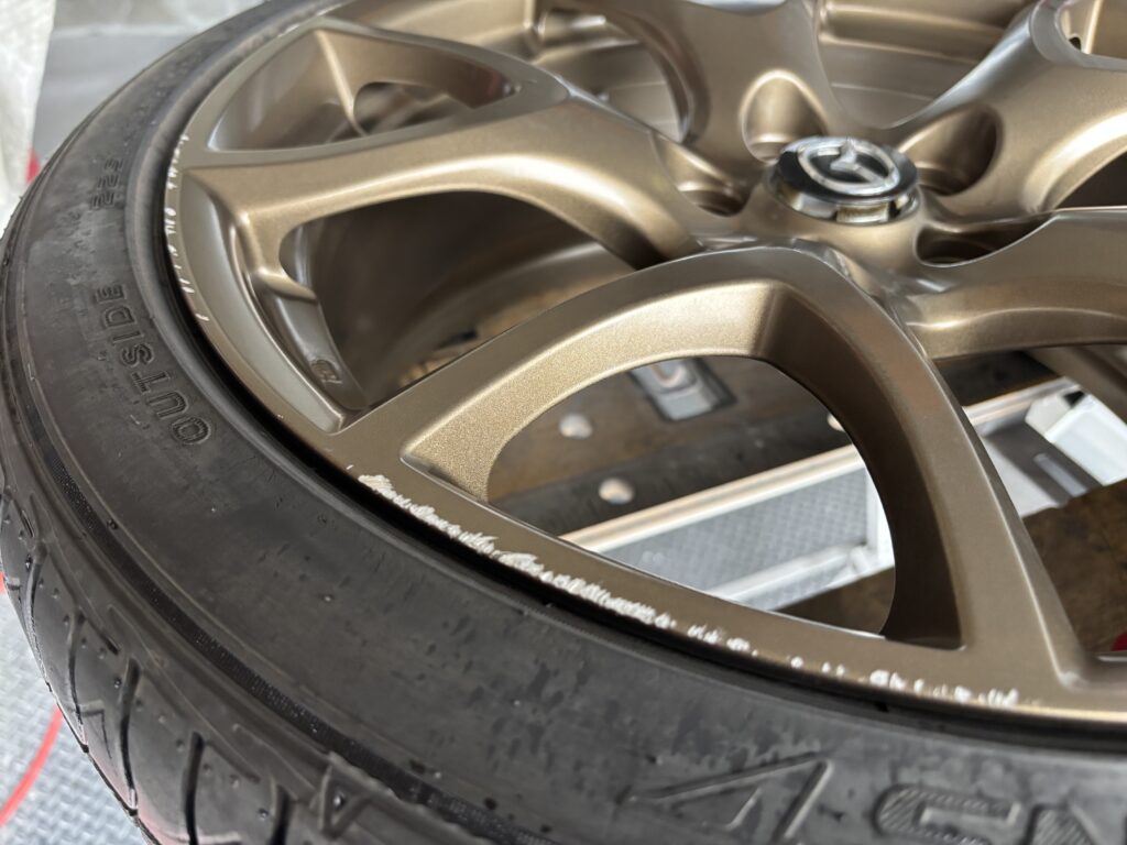 本日はMAZDA RX-8SPIRIT Rの純正アルミホイールガリキズ 3本をブロンズ塗装でリペアさせていただきました。