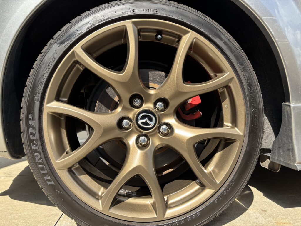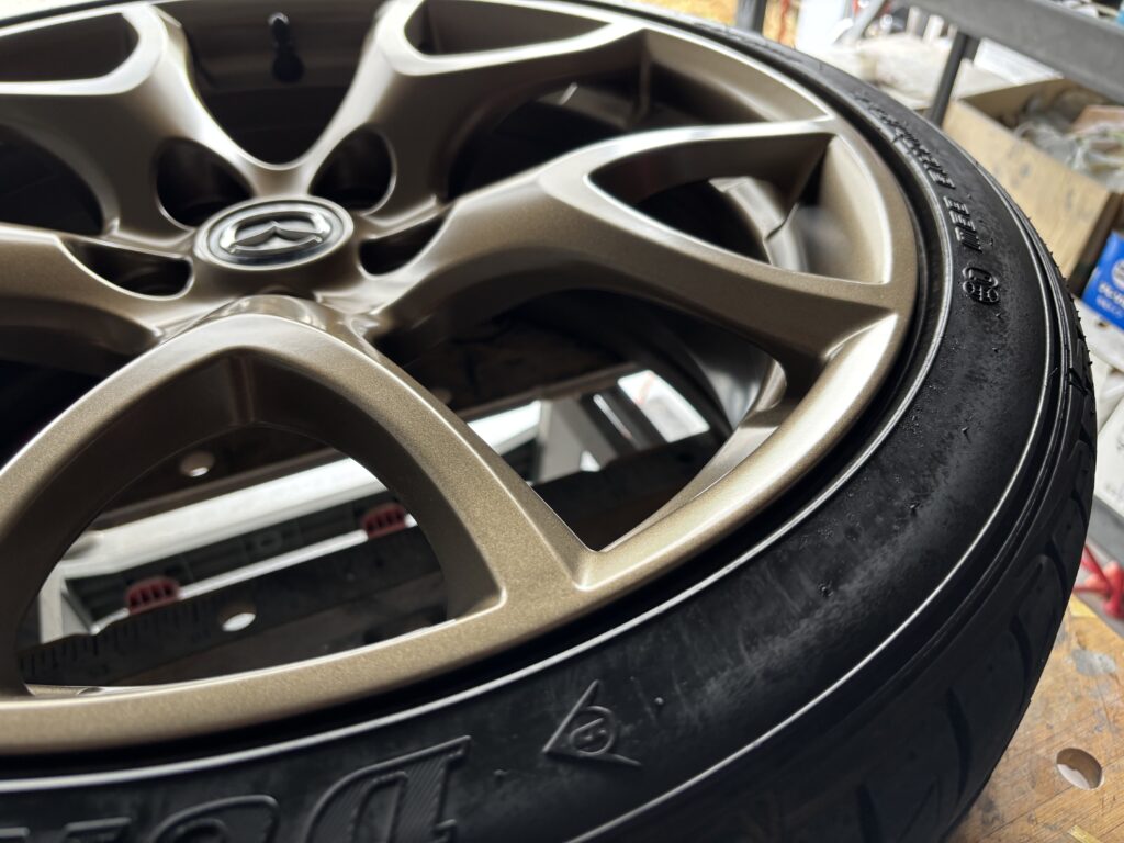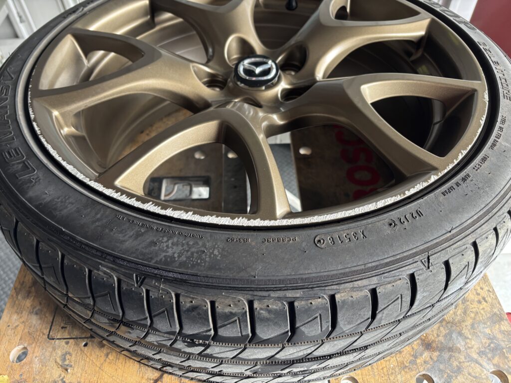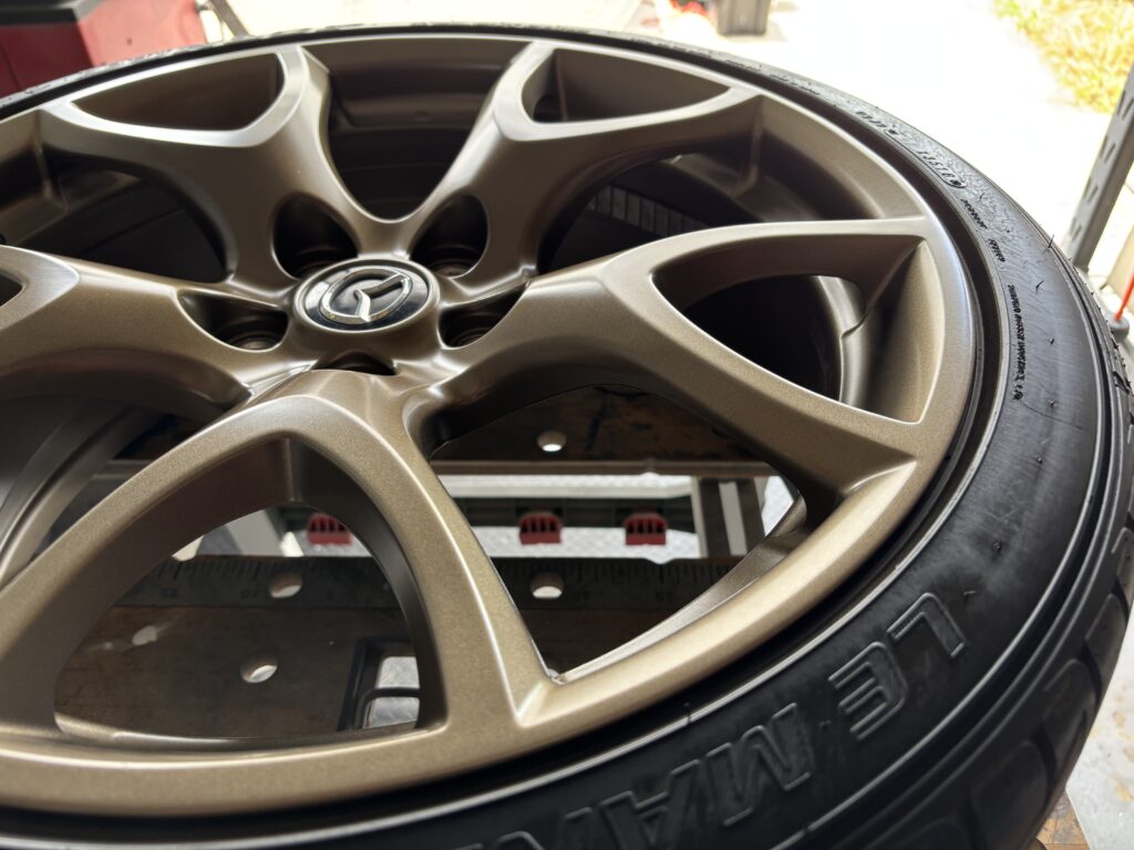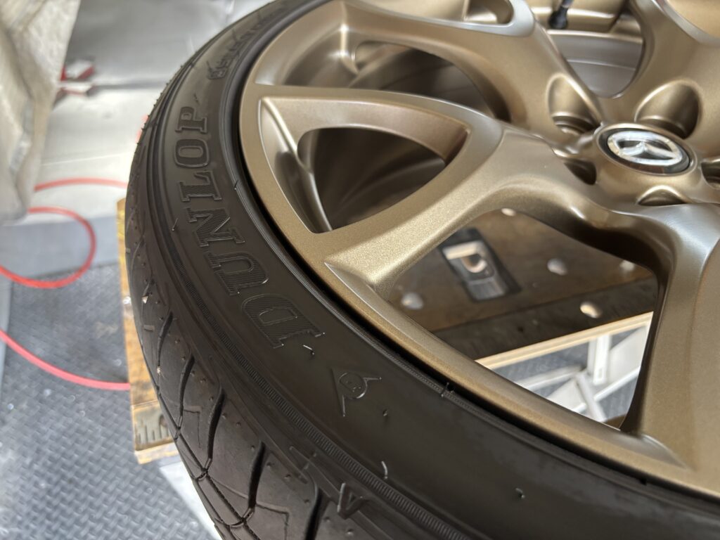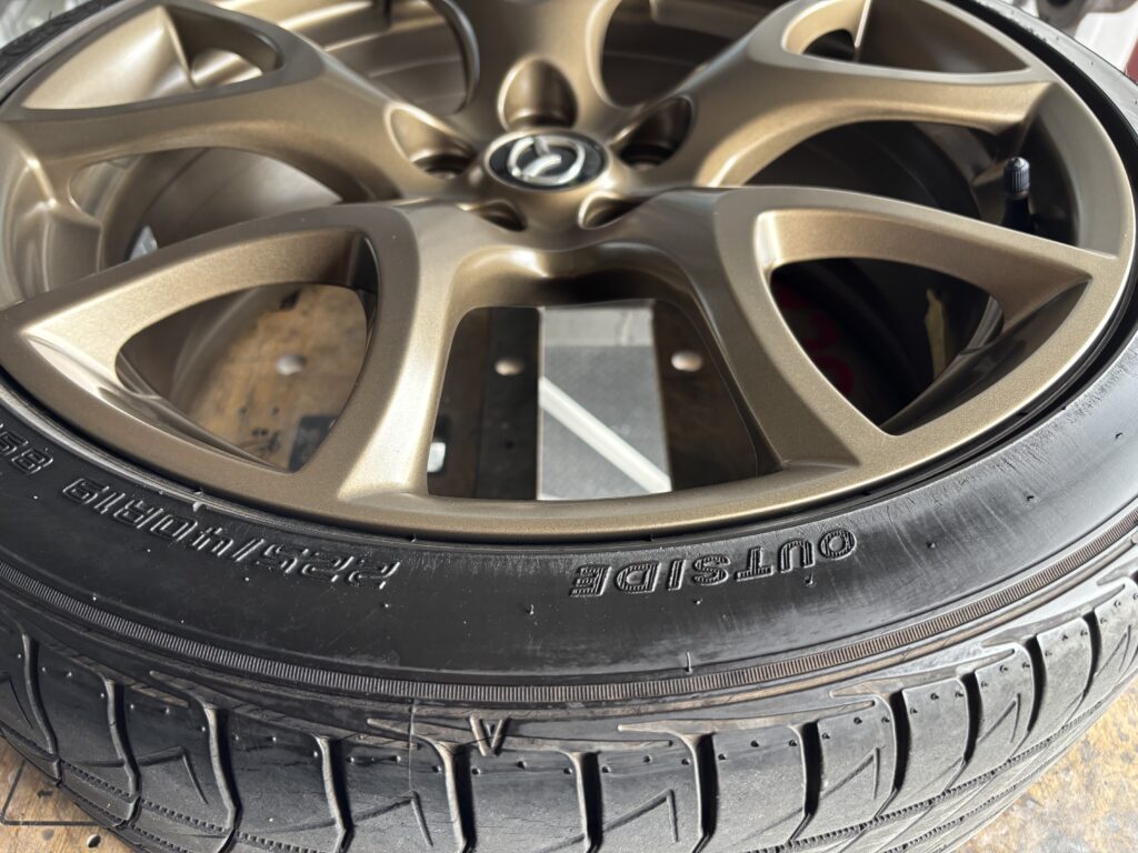 本日はMAZDA RX-8SPIRIT Rの純正アルミホイールガリキズ 3本をブロンズ塗装でリペアさせていただきました。