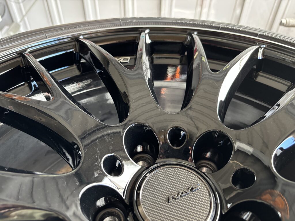 本日はレイズ ホムラ2×9のアルミホイールガリキズをアルミ用硬化パテを充填してブラック塗装&ポリッシュ塗装でリペアさせていただきました。