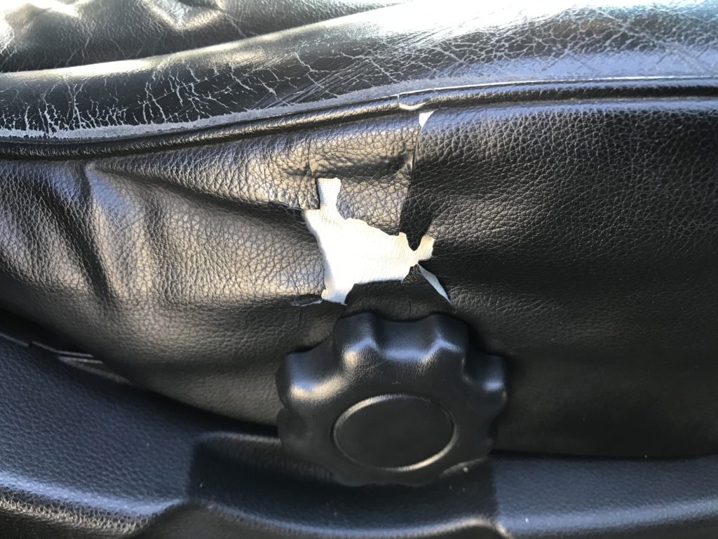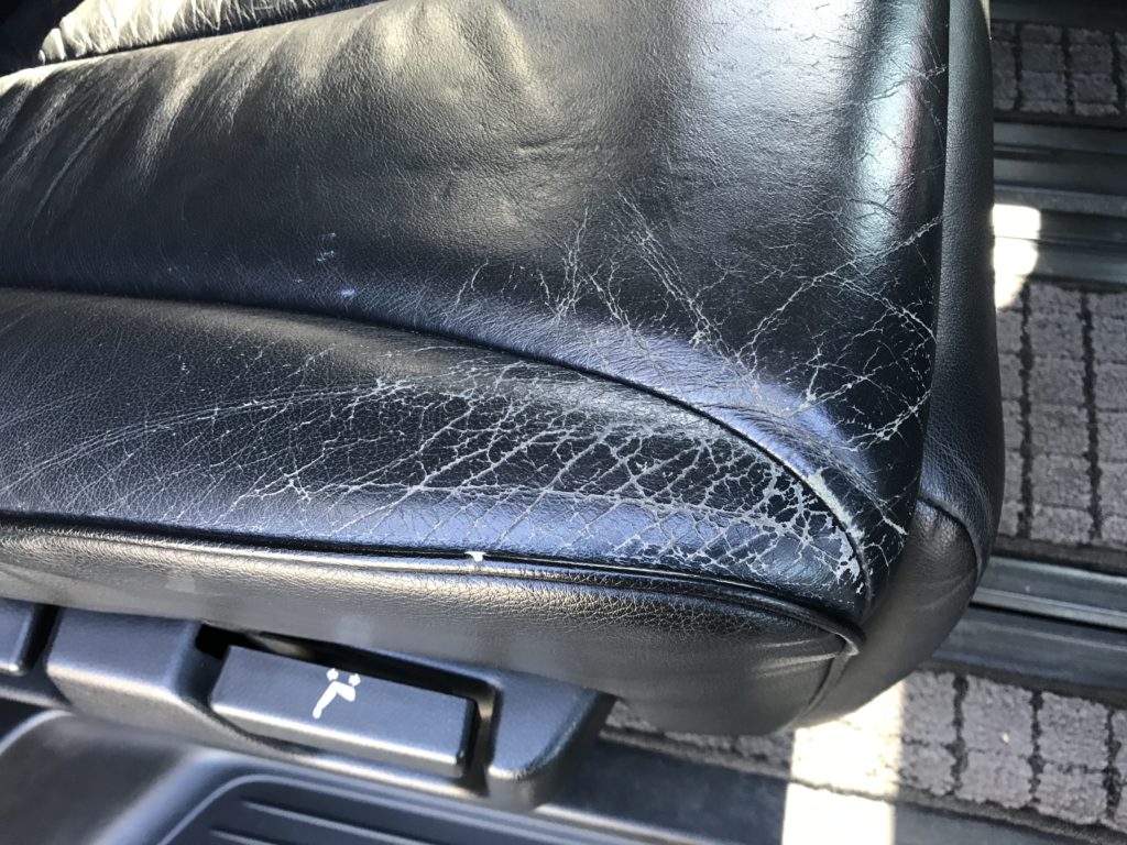 中古車販売店様の展示車両で運転席座面サイド(ビニールレザー)とセカンドシート座面(本革)を特殊パテ等を使いリペアさせていただきました。