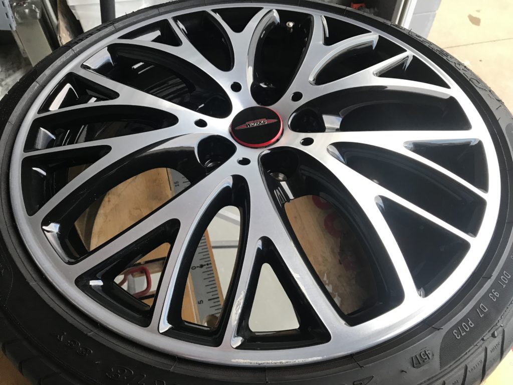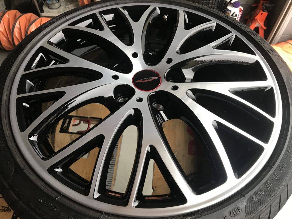CRAFTS505の施工実績をご覧いただきありがとうございます、本日の施工はミニクーパーのポリッシュタイプのホイールをポリッシュ塗装でリペアさせていただきました。またスポーク側面のブラック部にもキズがあるためブラック塗装で仕上げました。