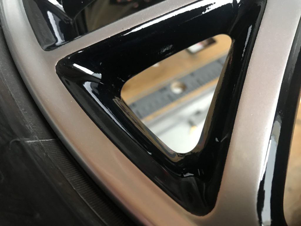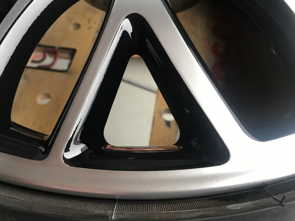純正18インチブラックポリッシュアルミホイールキズ(ブラック塗装&ポリッシュ風塗装リペア)