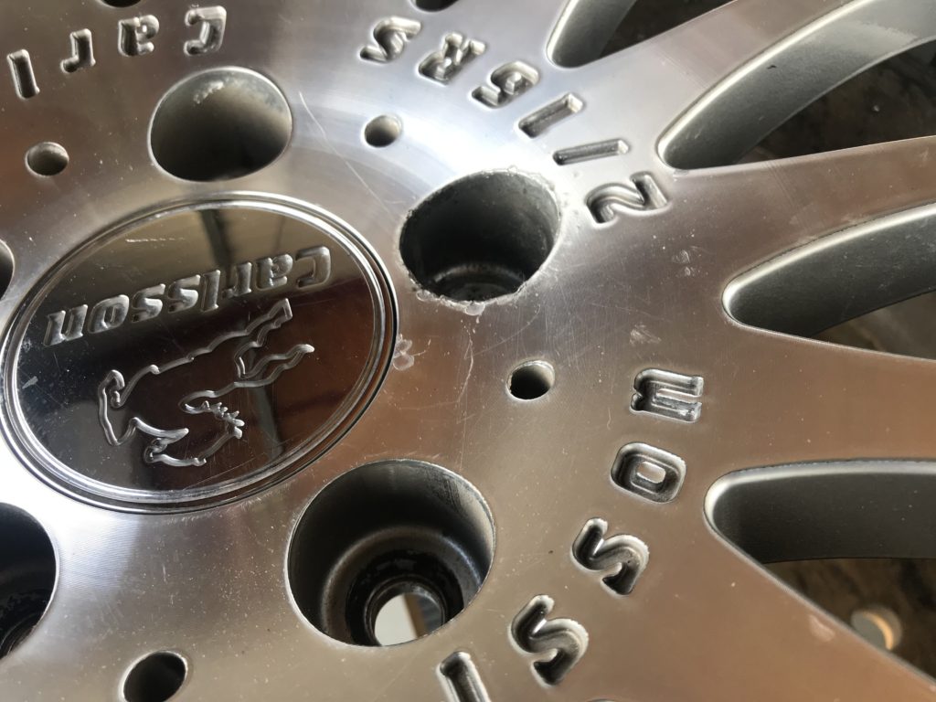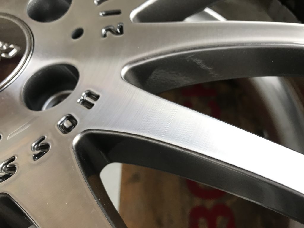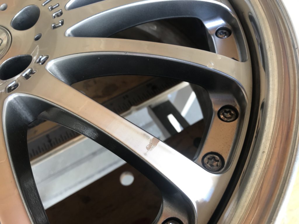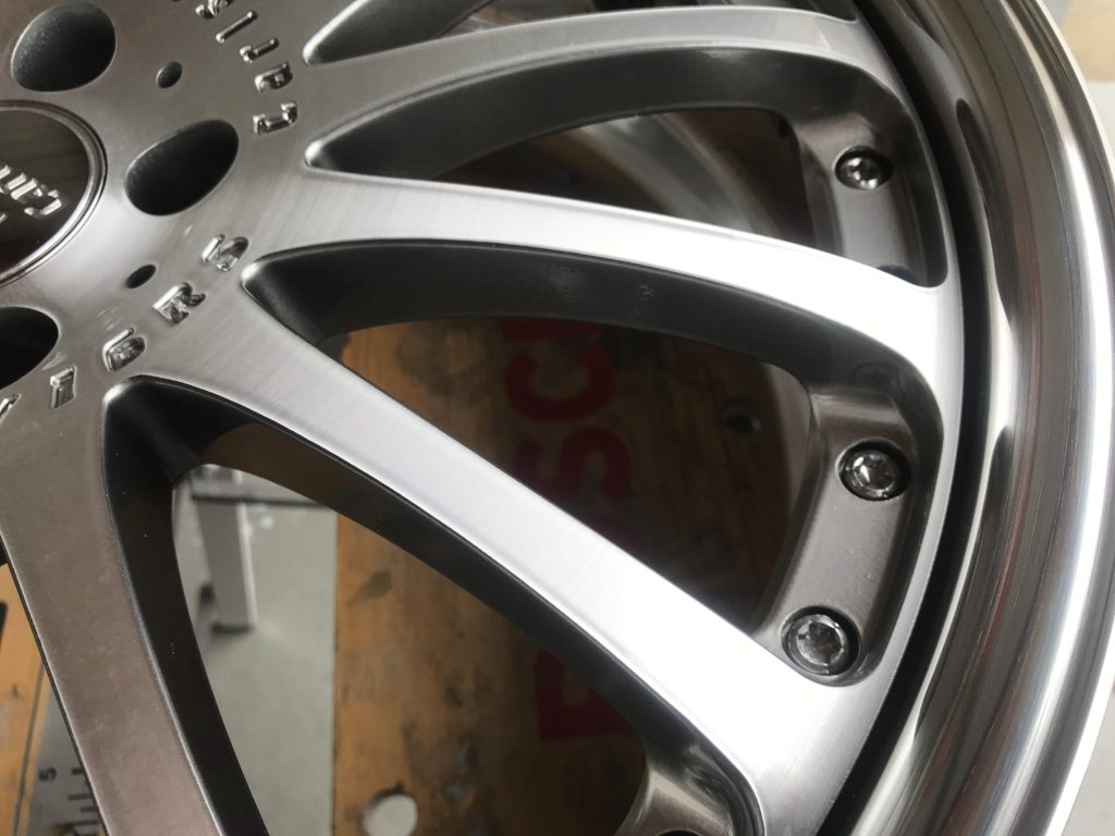 CRAFTS505の施工実績をご覧いただきありがとうございます、本日はカールソン 20inchディスク面の擦りキズやクリア剥がれなど多数の小傷をダイヤモンドカットで切削再生を行い、アルマイト リムのキズを鏡面研磨でリペアさせていただきました。
