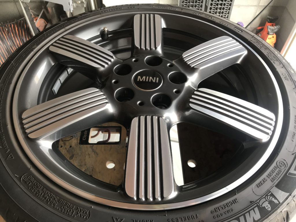 CRAFTS505の施工実績をご覧いただきありがとうございます、本日はミニクーパーSのダイヤモンドカットポリッシュホイールリムキズを切削でリペアさせていただきました。