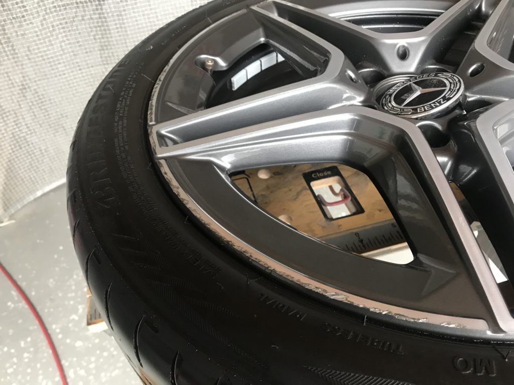 CRAFTS505の施工実績をご覧いただきありがとうございます、本日の施工はメルセデスの純正ダイヤモンドカットポリッシュのキズをリペアさせていただきました。アルミホイールデザイン・形状により塗装リペアか切削リペアかの判断をさせていただきます、今回はスポーク部を塗装、リム部は切削で、近接部のガンメタは塗装でリペアさせていただきました。