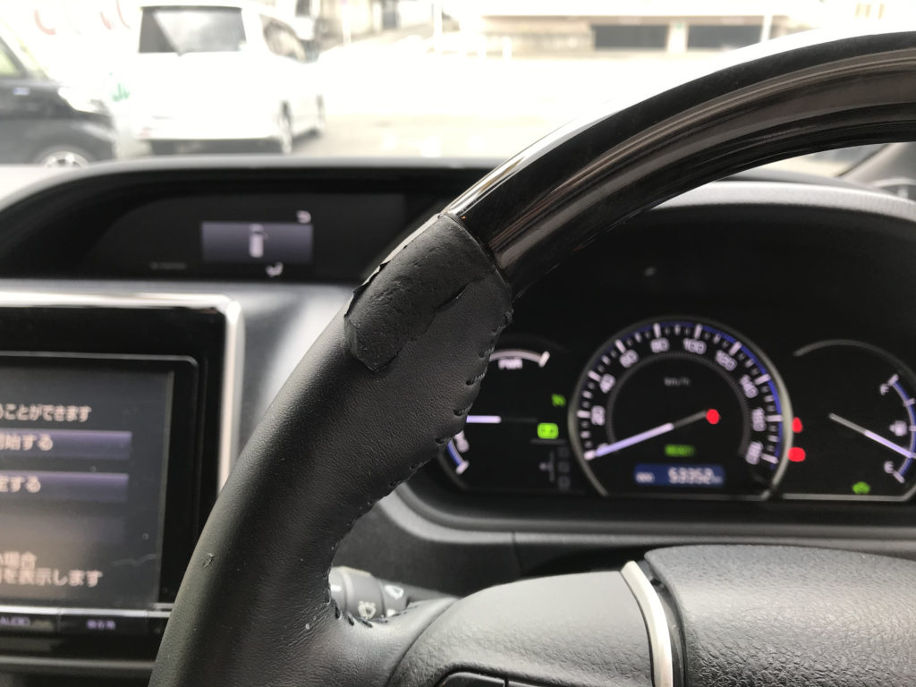 CRAFTS505の施工実績をご覧いただきありがとうございます、本日はトヨタエスクァイアのステアリング表皮が剥がれ欠損している状態のリペアを行いました。